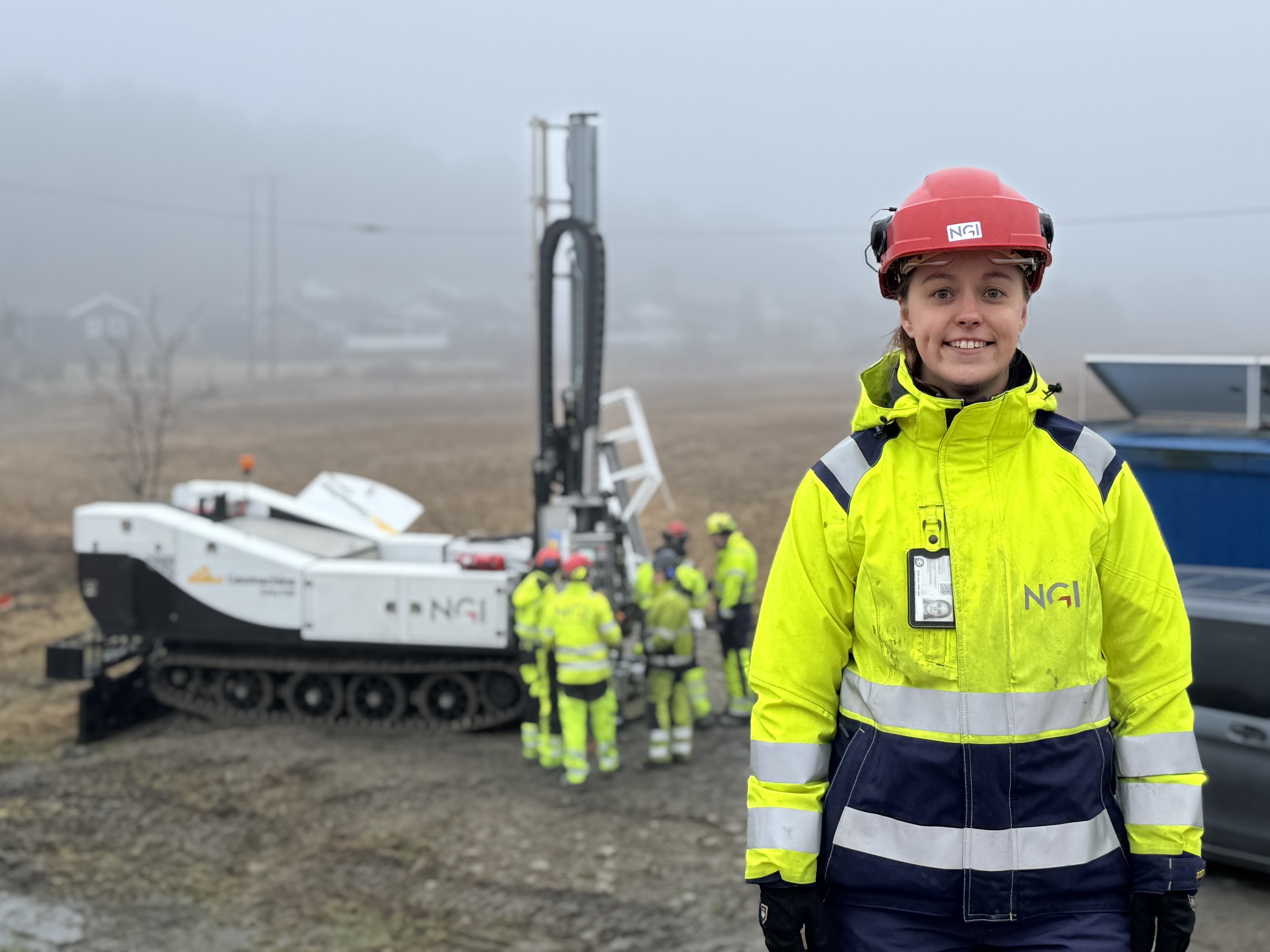 Silje Grimstad tar oss med til Norges Geotekniske Institutts (NGI) forsøksfelt på Onsøy i Østfold. Forsøksfeltet er et av seks som inngår i forskningsinfrastrukturen Norwegian Geo-Test Sites (NGTS). Disse brukes som feltlaboratorier for uttesting og verifisering av nye, innovative metoder for grunnundersøkelser og forsøksprosedyrer. Silje leder NGIs avdeling for feltundersøkelser og har vært sentral i bestillingsprosessen av helelektriske GMe100.