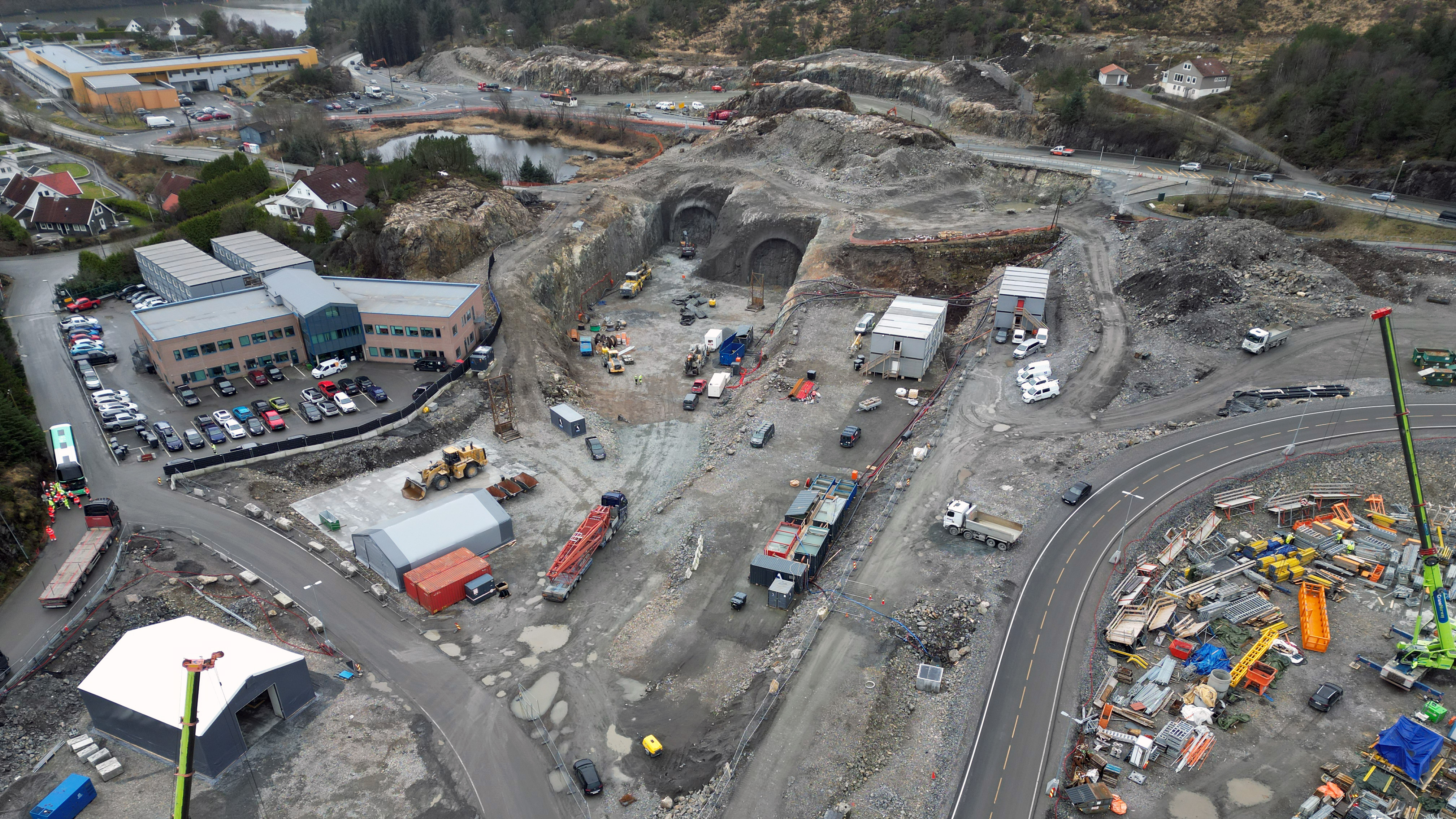 Gjennomslag i tunnelen er venta mot slutten av 2025. Massane frå tunneldrivinga blir frakta til Arefjordpollen og Storavatnet i Loddefjord.