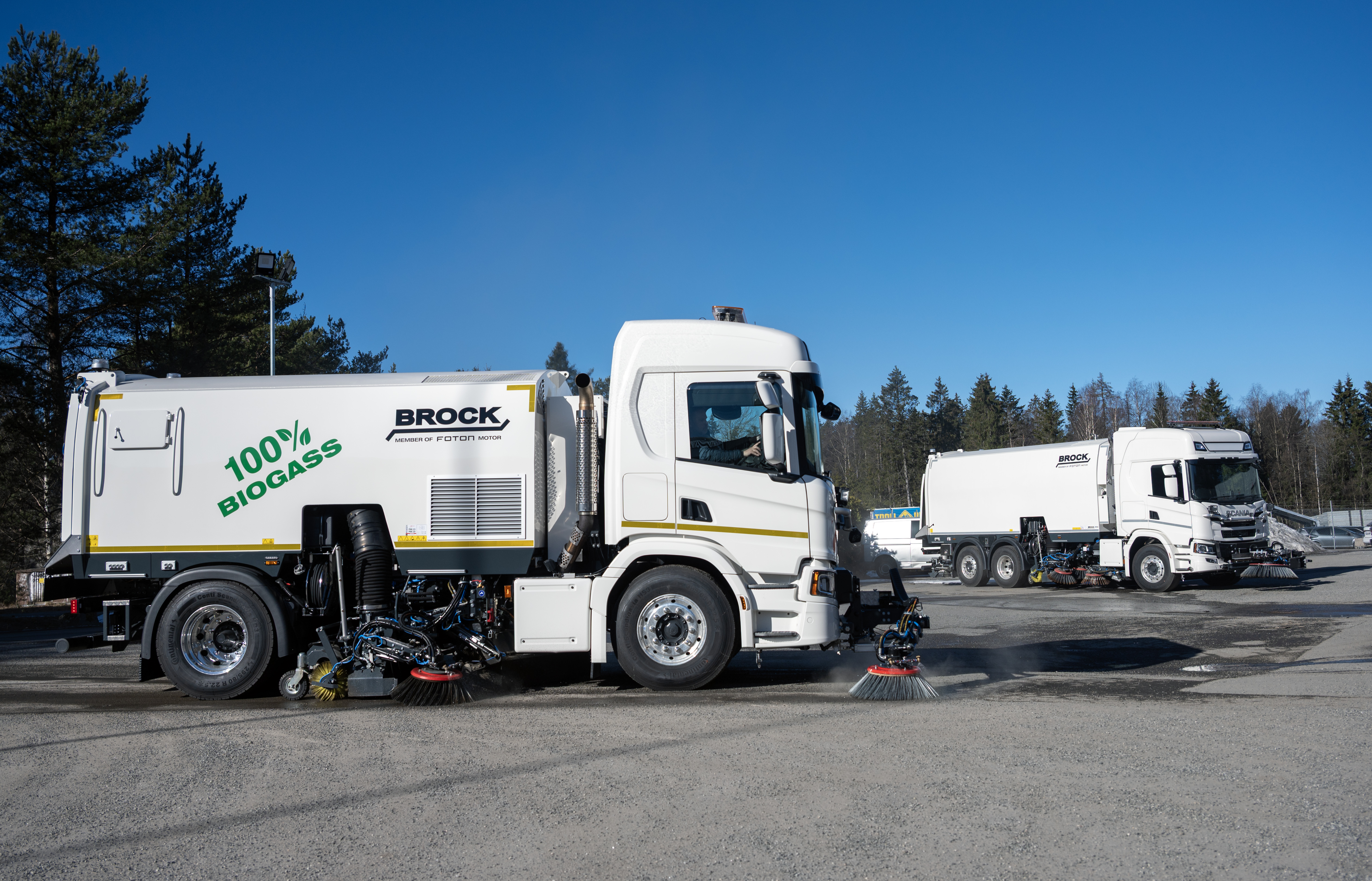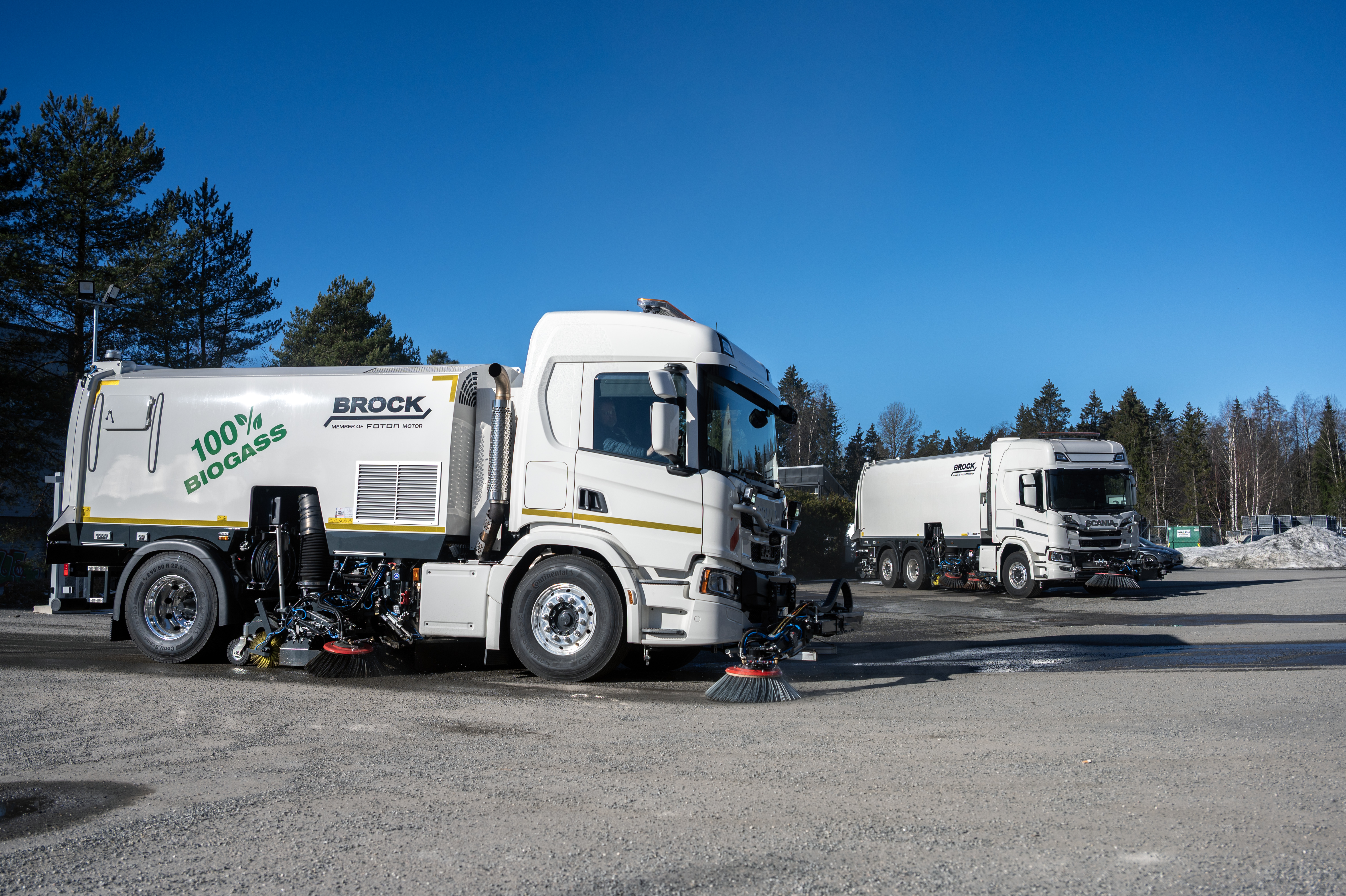 I tillegg til den nye 2-akslede feiebilen med gassmotor har de også bygget en hakket større feiebil på en treakslet Scania G 500 med 12 m3 oppsamlertank og har betegnelsen Brock VS 12.
