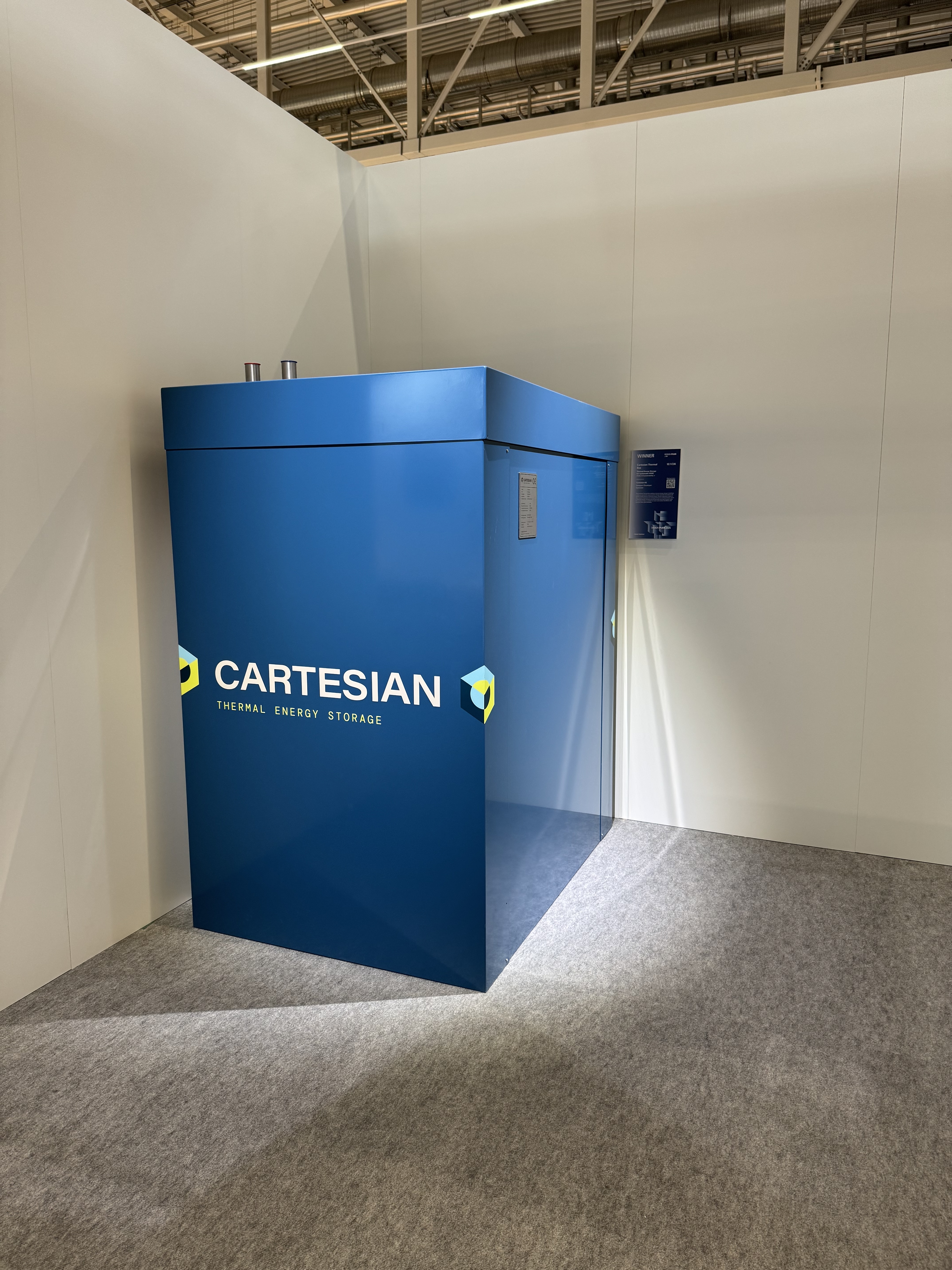 Det norske selskapet Cartesian er kåret til årets vinner av Nordic Innovation Award for sitt banebrytende arbeid med energilagring for store varme- og kjølesystemer. Deres termiske batteri, som lades med varme eller kulde når energitilgangen er god og strømprisen lav, bidrar til å redusere energiforbruket med 10 %, energikostnadene med 20 % og effekttopper med minst 30 %.
