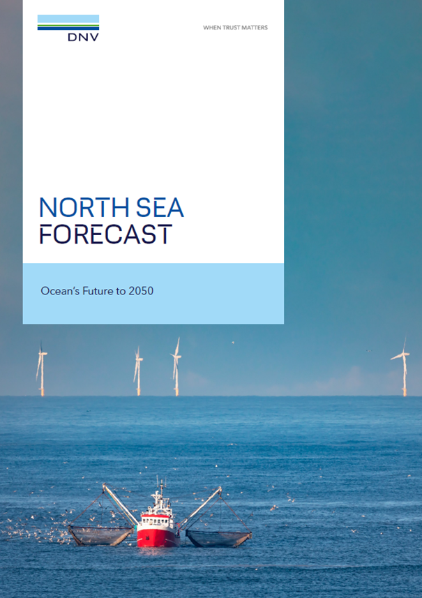 Ifølge DNVs rapport North Sea Forecast: Ocean’s Future to 2050 er energiomstillingen den dominerende trenden blant de råvarebaserte næringene i Nordsjøens havøkonomi. I 2050 vil bruttoinntekten fra elektrisitet fra havvind i Nordsjøen være om lag like stor som bruttoinntekten for regionens olje og gass.