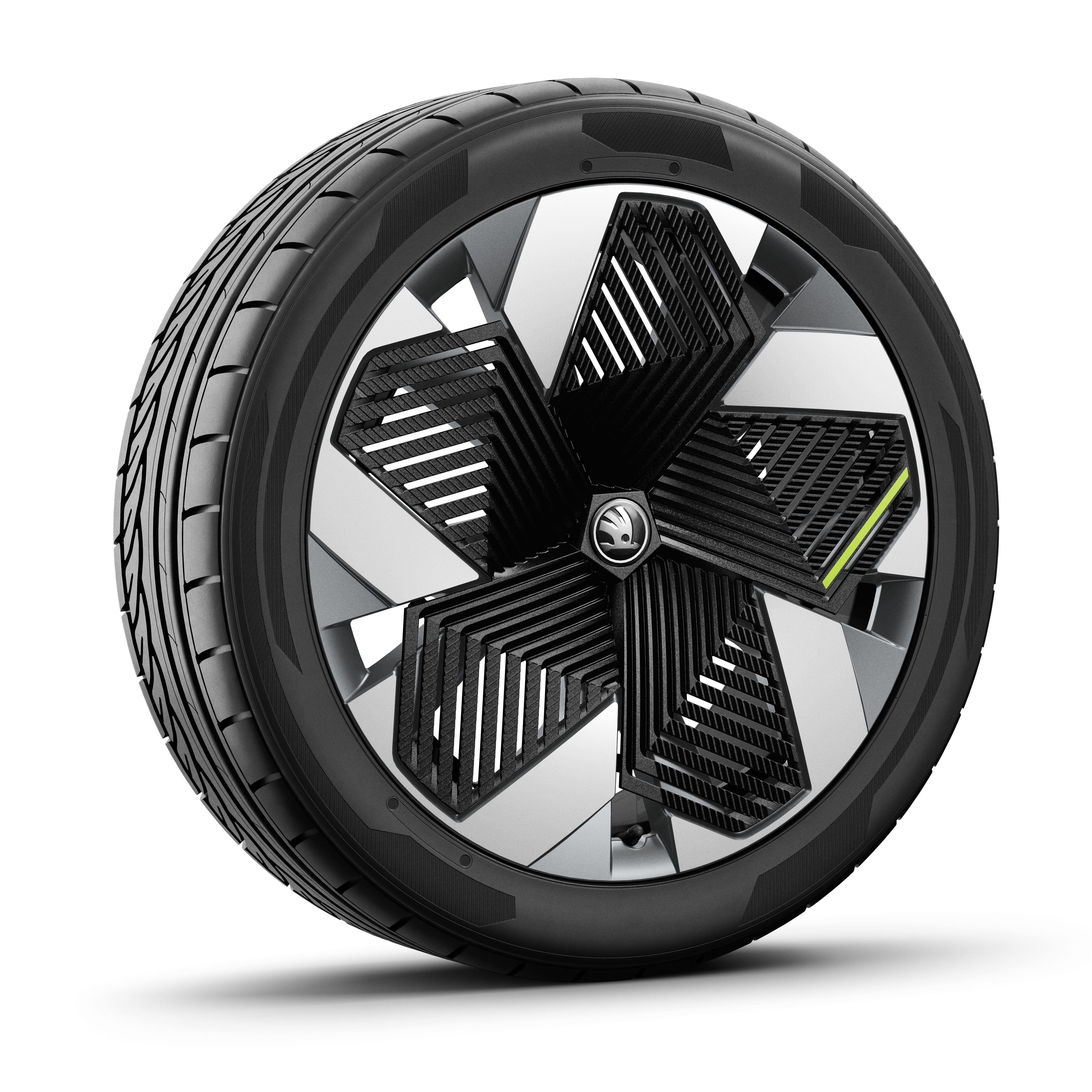 Škoda Elroq RS tilbys med med LED Matrix, DCC-adaptivt understell, progressiv styring, mørke ruter bak og sorte 20” tommers Draconis-felger som standardutstyr.