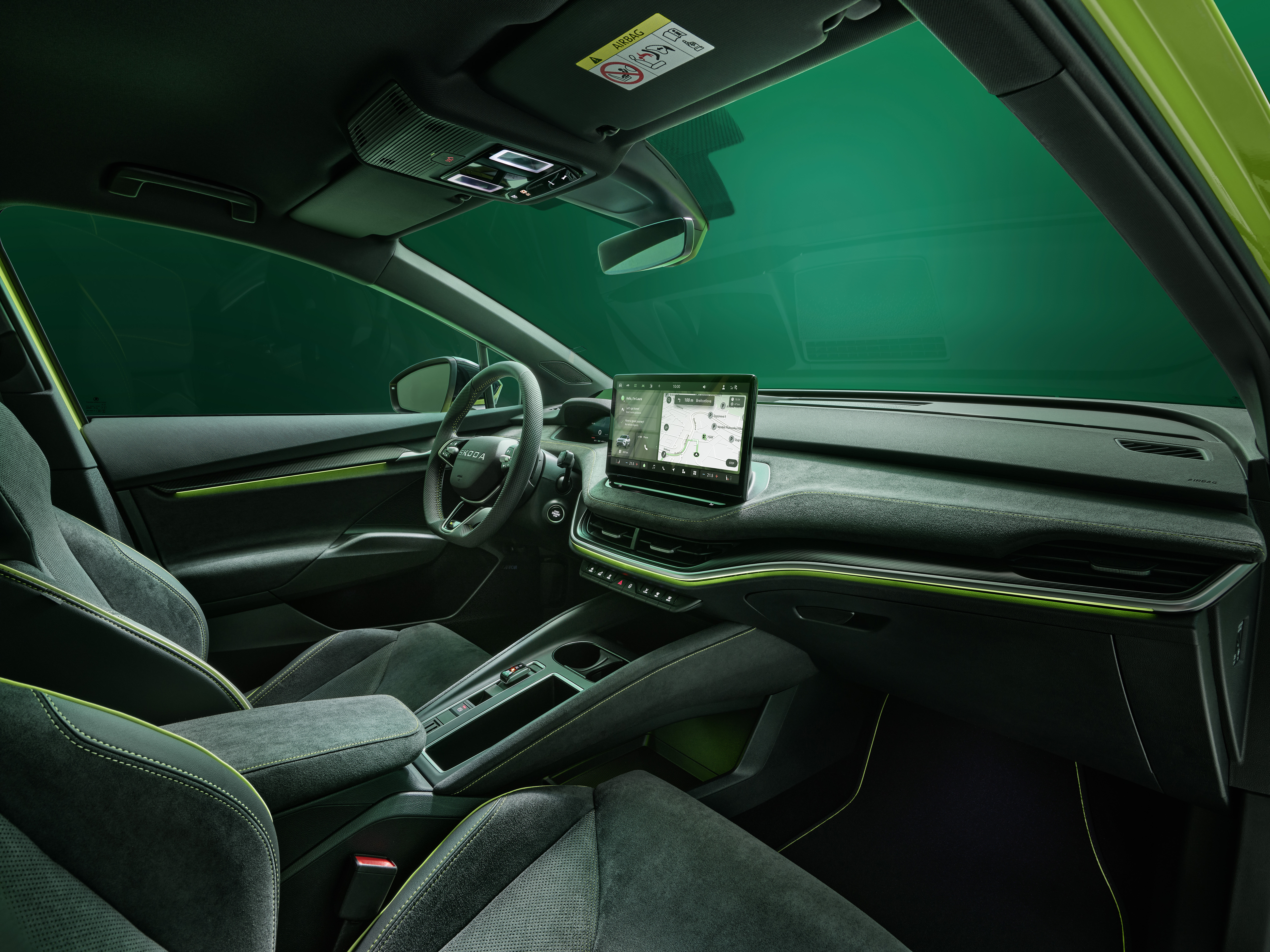 Eksklusivt RS interiør med limegrønne kontrastsømmer