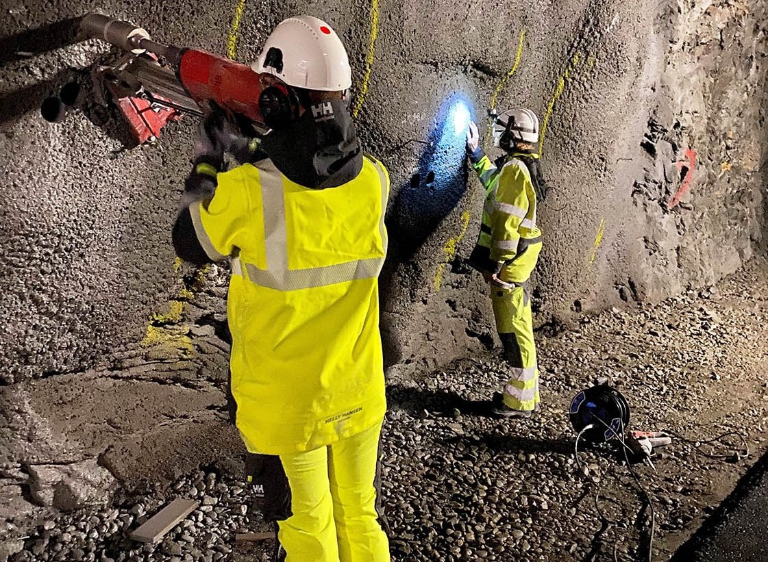 Tunnel- og anleggsbransjen trenger et teknologisk løft. Her bores kjerneprøver av sprøytebetong i en tunnel i Svorkmo.