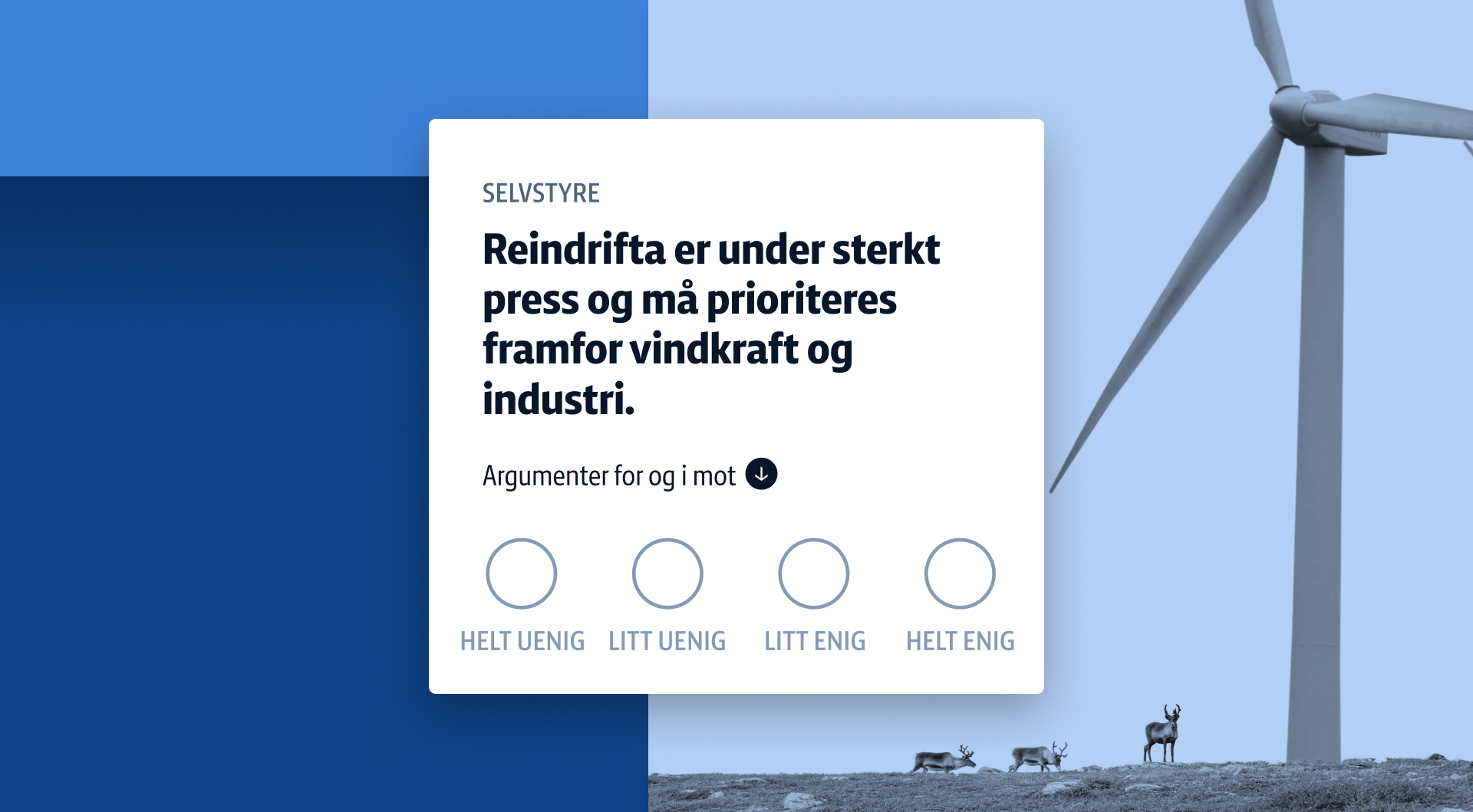 NRKs valgomat for stortingsvalget 2025 er en partitest som hjelper deg å finne ut hvilket parti du er mest enig med, ved å ta stilling til politiske saker som er aktuelle i norsk politikk.