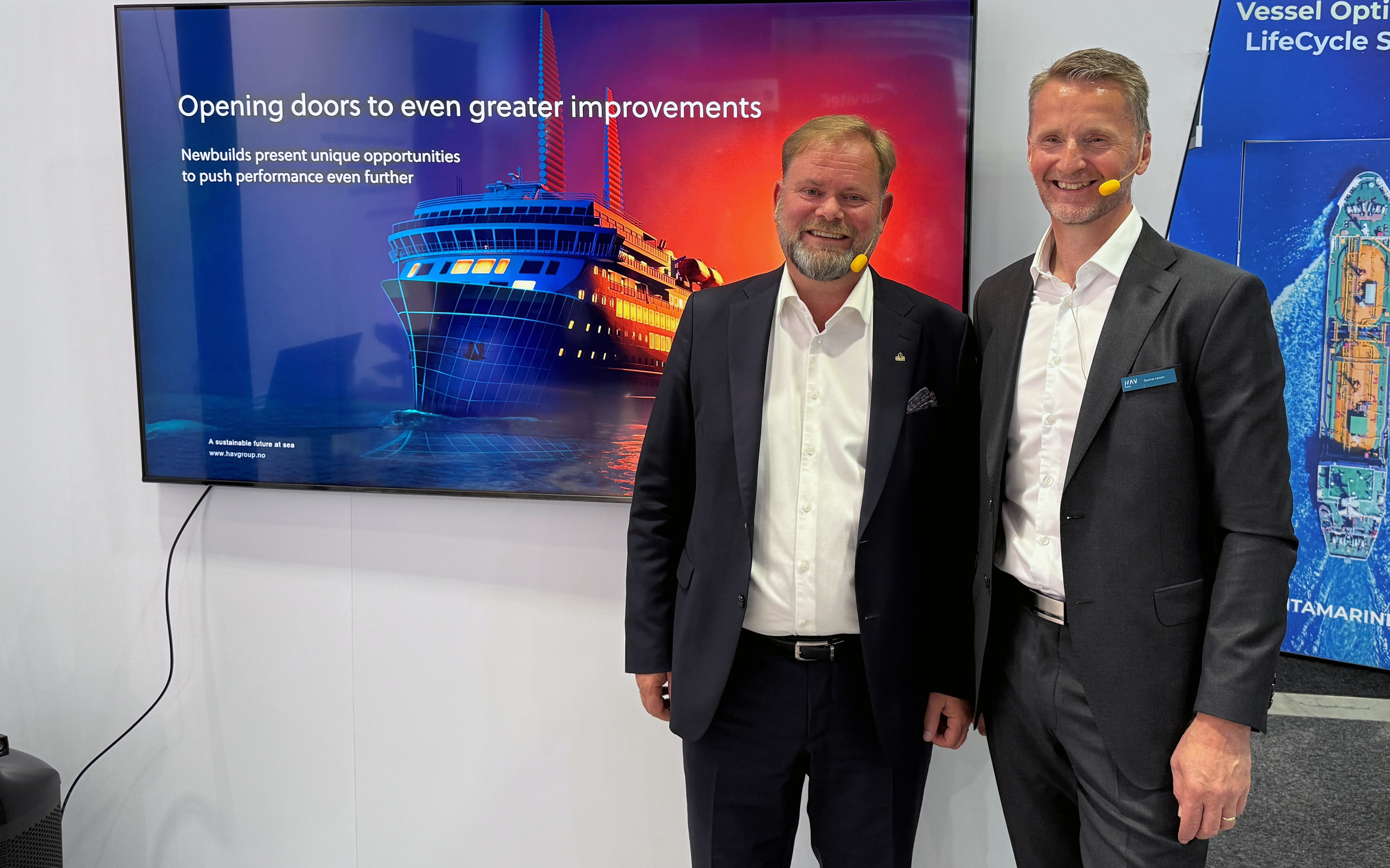 During Nor-Shipping in Lillestrøm on Wednesday, CEO of HAV Group, Gunnar Larsen, and CEO of Havila Voyages, Bent Martini, presented initial thoughts on continuing their cooperation. The goal is clear: Havila Voyages wants to grow on the Bergen – Kirkenes – Bergen route in the next contract period and further reduce its emissions.