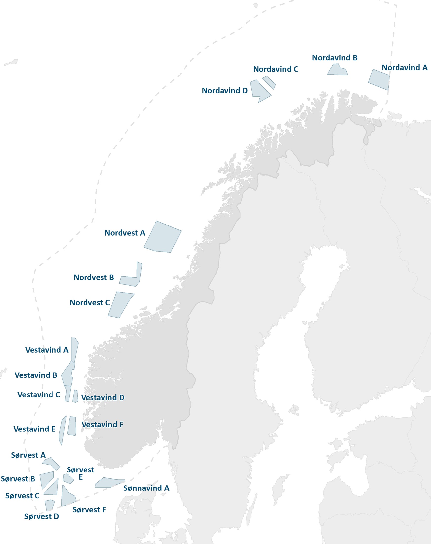 Enkelte av områdene lengst nord, som Nordavind C, Nordavind D og Nordvest B, vurderes som minst egnet for havvind. Her er det det langt til land, behov for umoden likestrømteknologi og svake vindressurser.