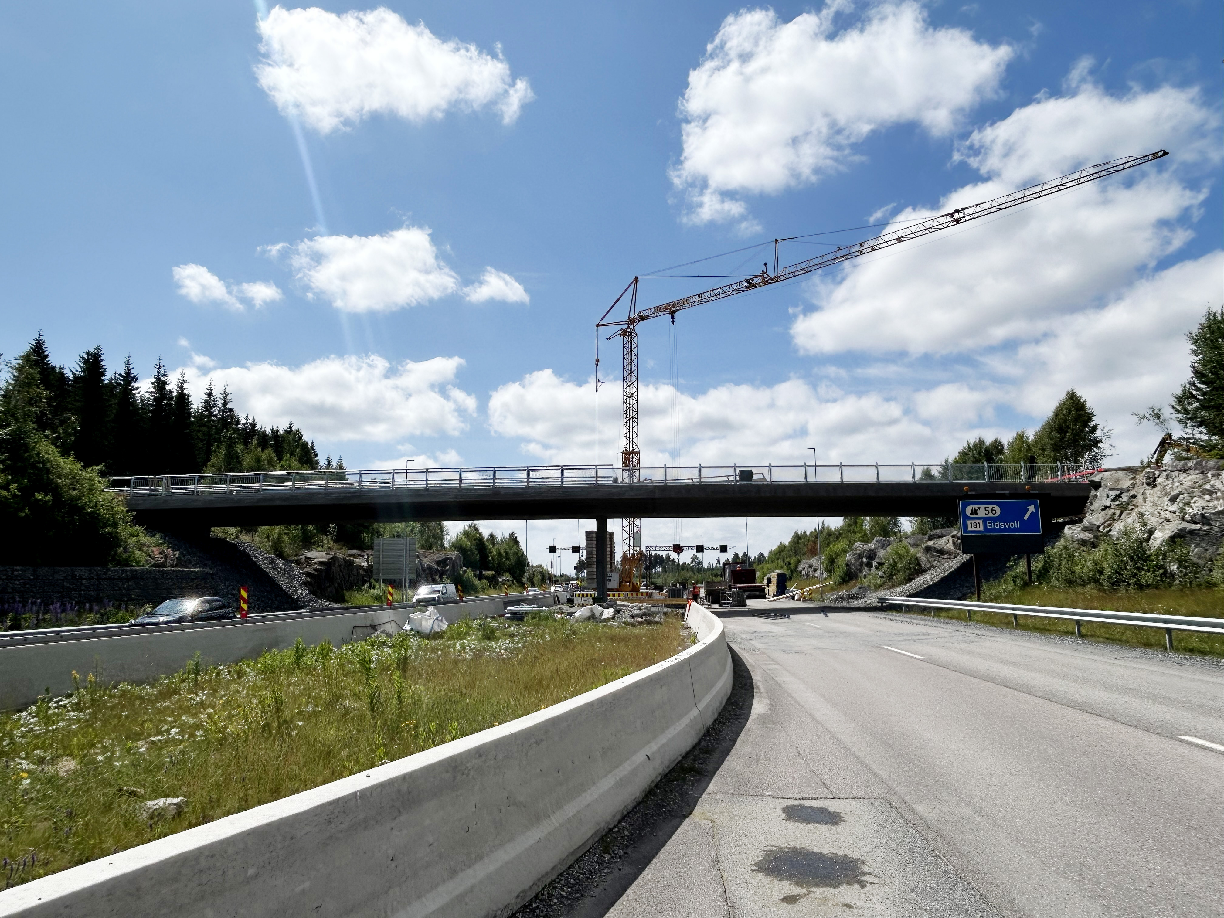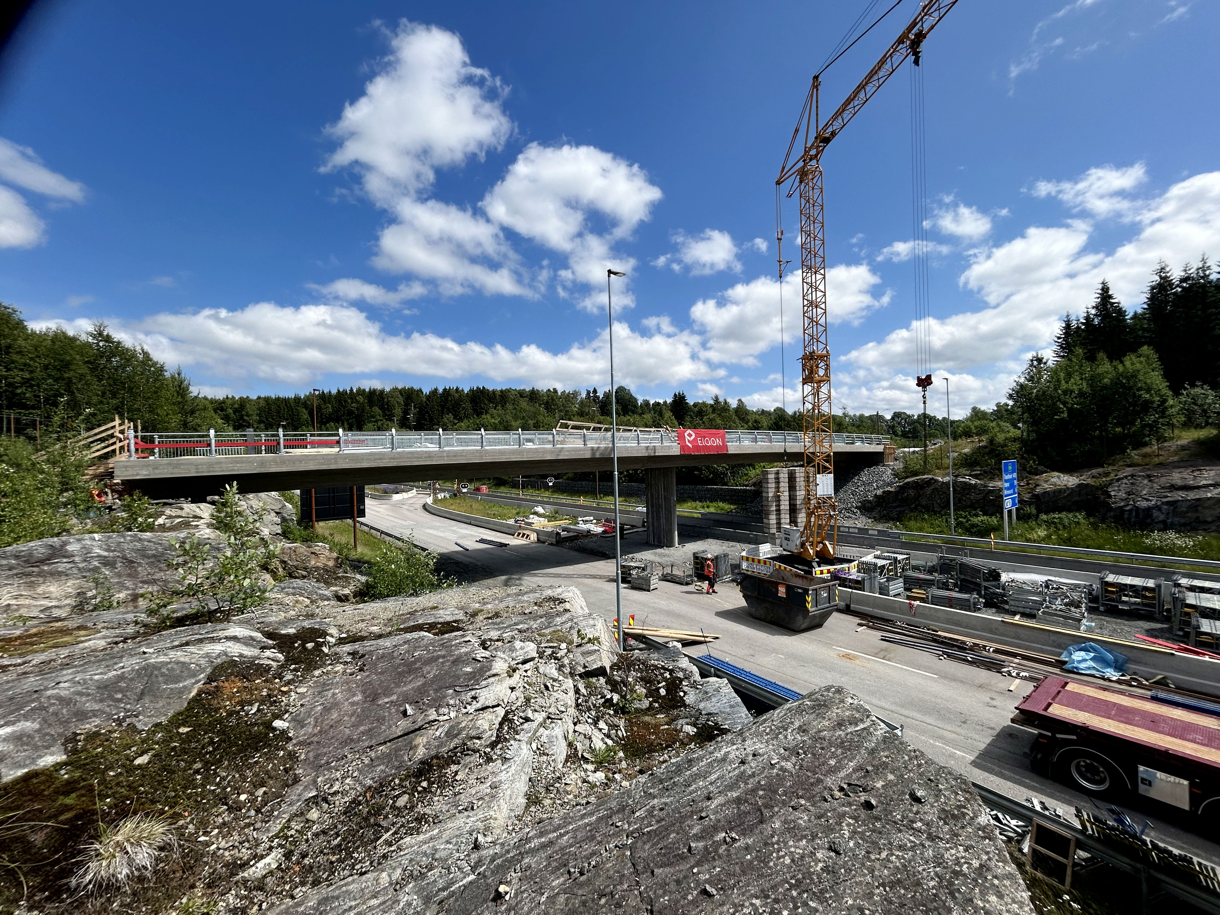 – Vi planlegger å åpne brua over E6 mot slutten av neste uke. Fredag 11. juli er arbeidsdatoen vår. For å få til det er vi avhengig av oppholdsvær slik at vi får lagt membran og asfaltert på brua, sier Eiterjord.