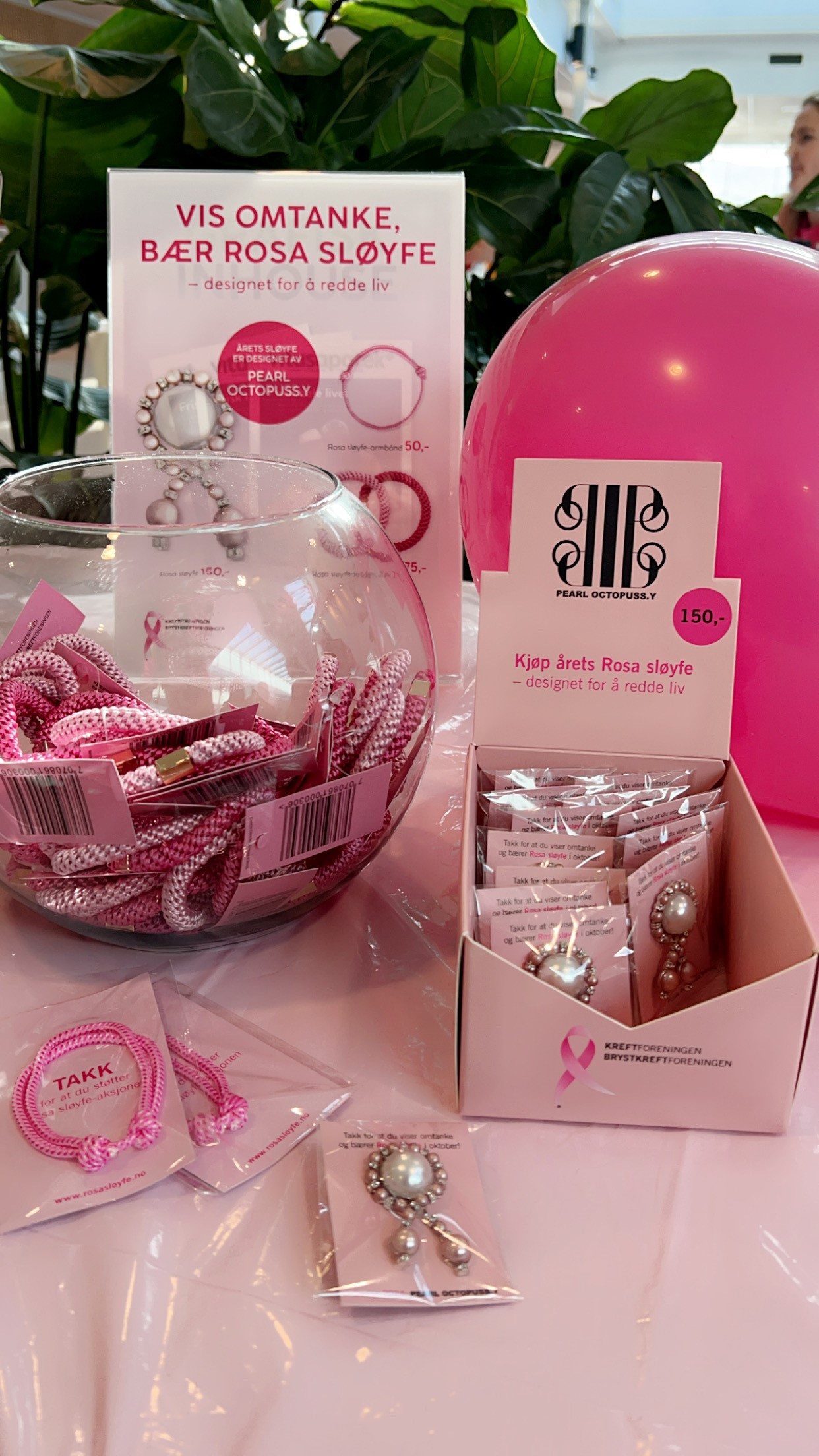 – Det har vært veldig gøy fordi det har vært så stort engasjement fra kundene, det har vært utrolig stor etterspørsel etter sløyfene! Den store etterspørselen etter sløyfene har jo også gjort at vi har solgt mye av de andre rosa produktene, som strikkene og armbåndene. Vi er veldig stolte av å være en del av Rosa sløyfe-aksjonen, og det har vært utrolig fint å støtte brystkreftsaken også i år.