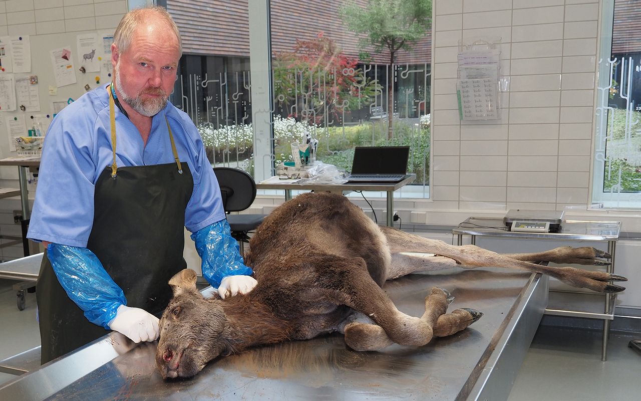 Prosjektleiar for Elgkalven Trampe, Bjørnar Ytrehus, ønskjer å undersøkje elgkalvar som blir funne døyande eller døydde. Foto: Ingunn Ruud, Veterinærinstituttet.