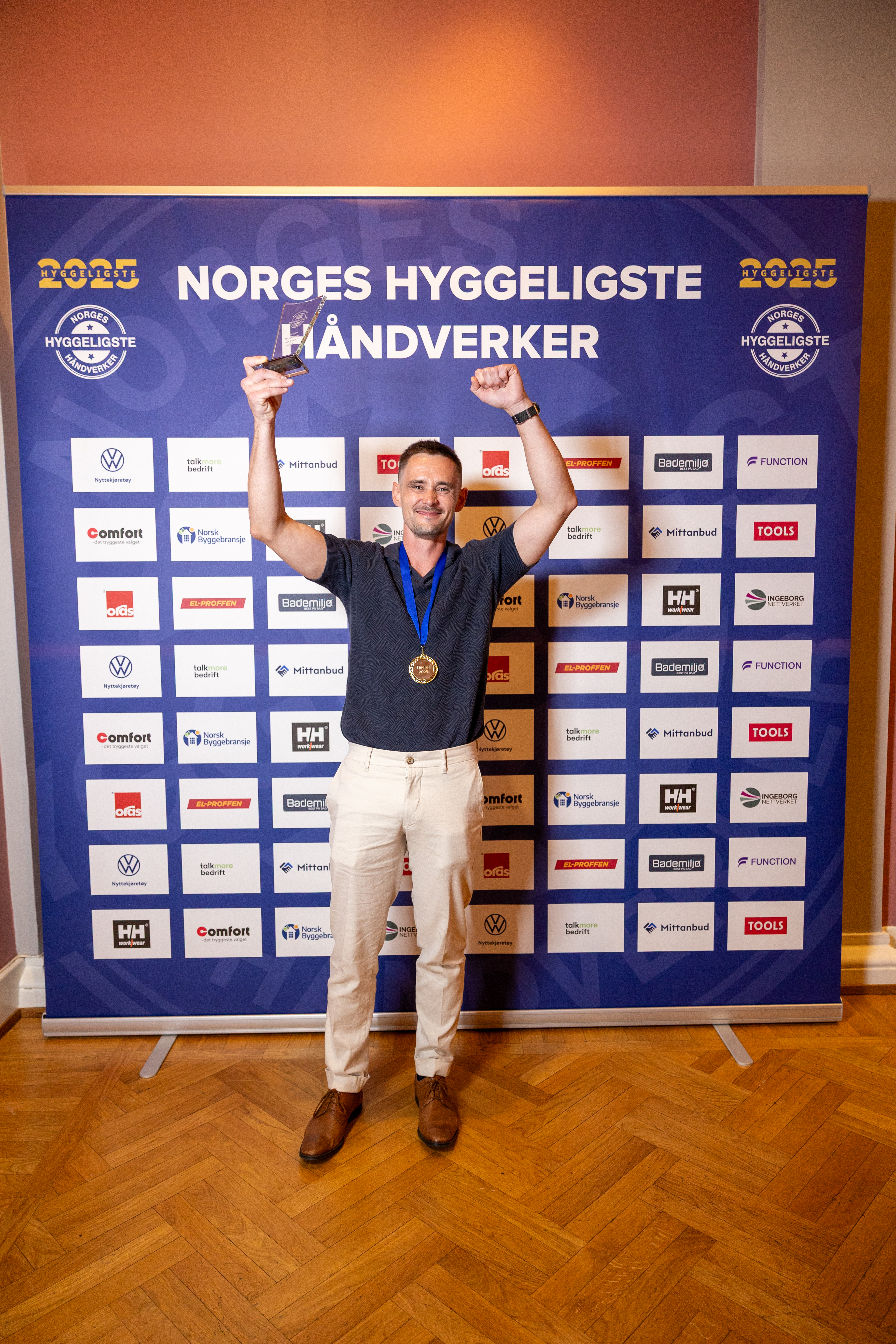 Lørdag 23. august var det endelig duket for håndverksbransjens store festkveld, da Norges Hyggeligste Håndverker ble arrangert på Gamle Logen i Oslo. Med 25 sterke finalister fordelt på åtte kategorier, lå alt til rette for en spennende kåring. Kvelden endte med at en stolt og rørt gjeng kunne ta imot sine priser fra scenen. Blant disse kategoriene ble Norges hyggeligste murer kåret, og i år var det Terje Norheim som vant den gjeve tittelen!