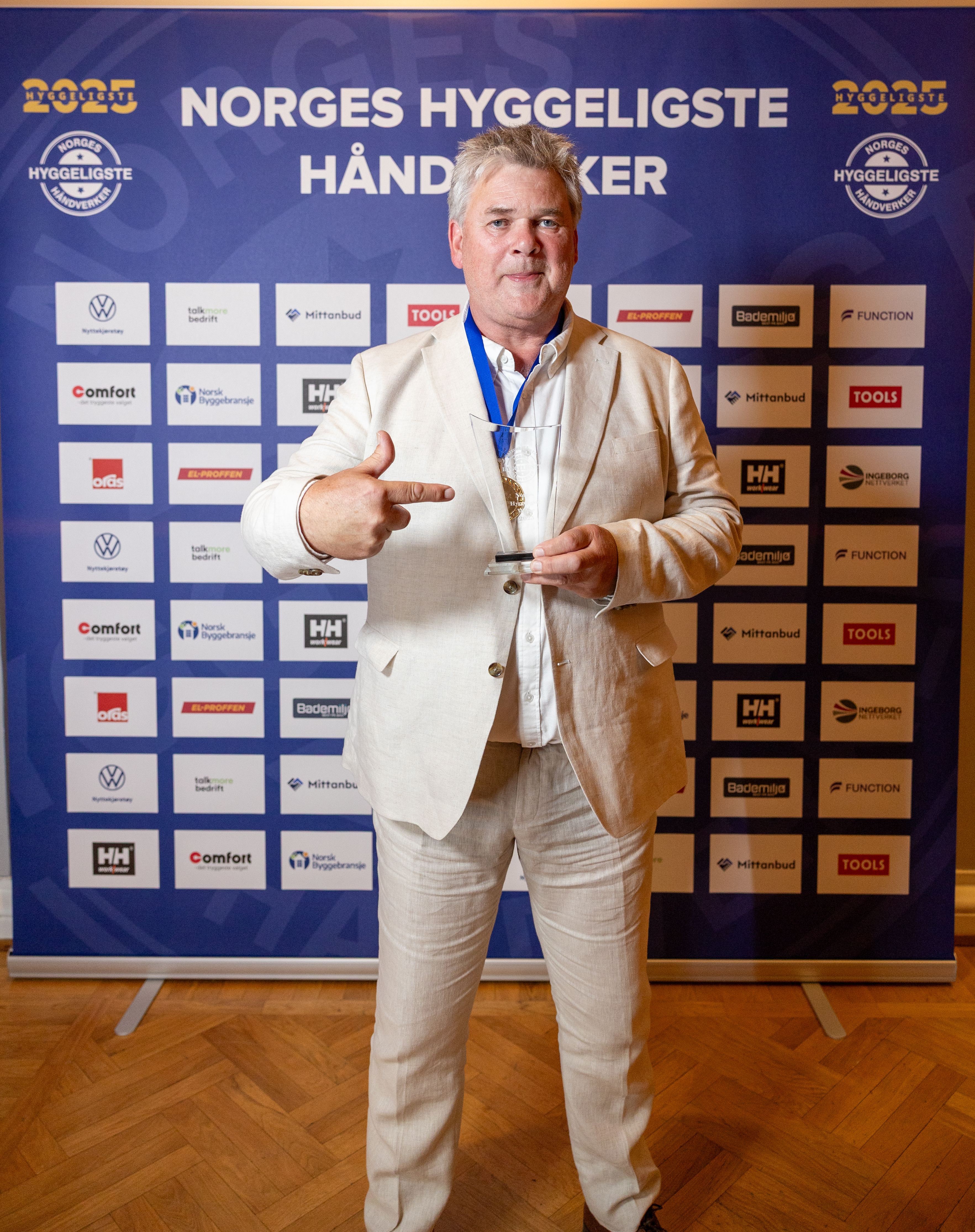 Lørdag 23. august var det endelig duket for håndverksbransjens store festkveld, da Norges Hyggeligste Håndverker ble arrangert på Gamle Logen i Oslo. Med 25 sterke finalister fordelt på åtte kategorier, lå alt til rette for en spennende kåring. Kvelden endte med at en stolt og rørt gjeng kunne ta imot sine priser fra scenen. Blant disse kategoriene var det Norges hyggeligste snekker, og i år var det Hilmar Iversen som vant den gjeve tittelen! En stolt og glad vinner mottok prisen.