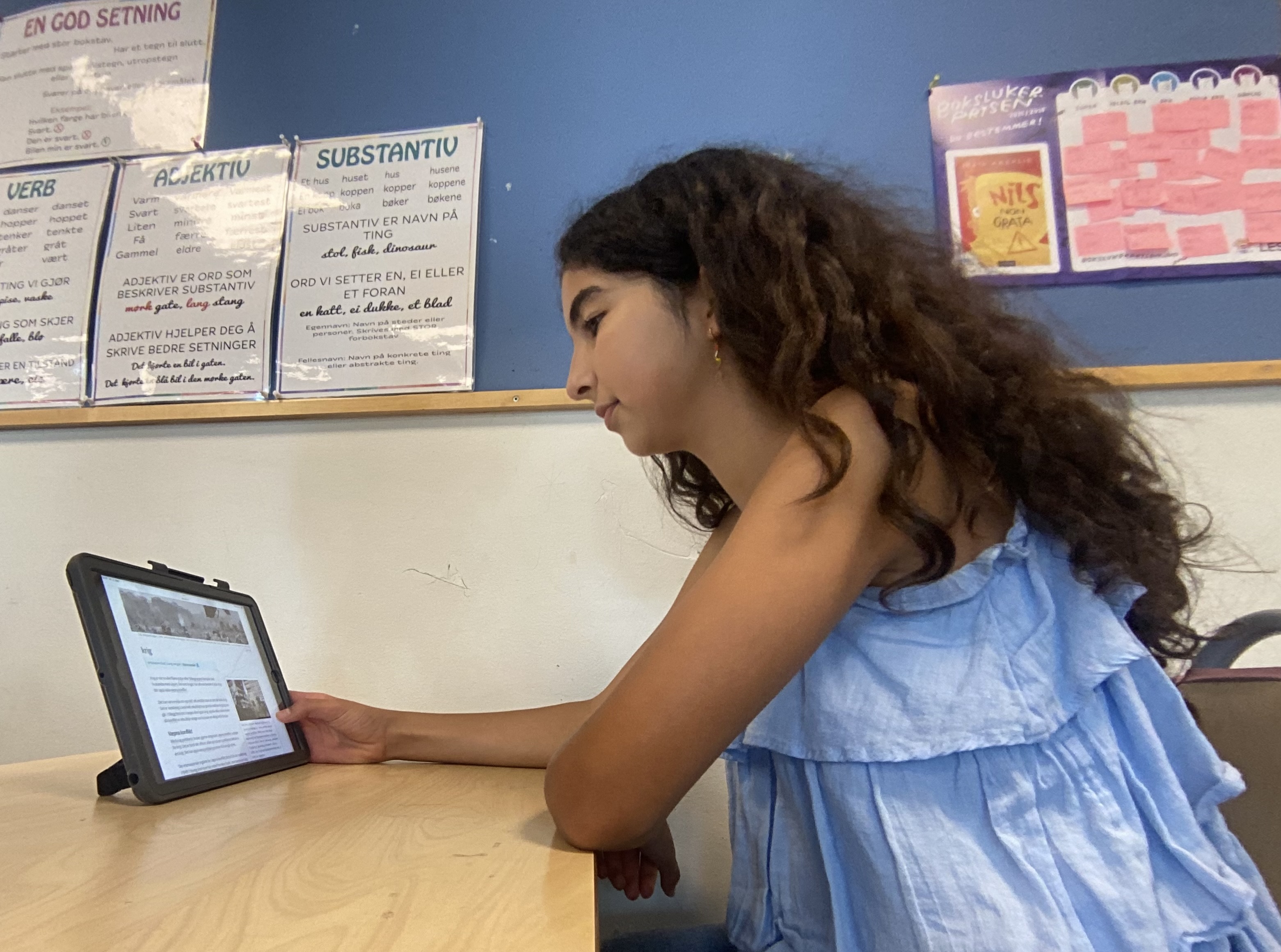 – Vi hadde oppgave å skrive om Norge, da fant vi informasjon om kjente folk, severdigheter og steder i Norge. For meg og andre er det en enklere måte å lære ting på, sier Helin Meradi.