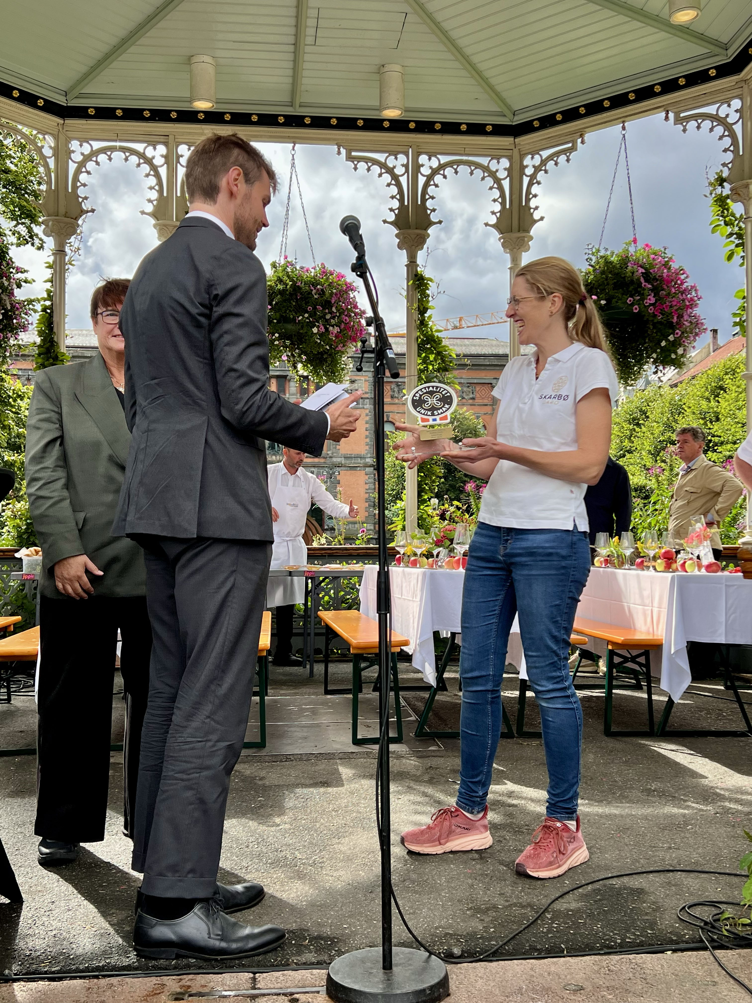 - Hos Skarbø Gard dyrkes og foredles epler med stor respekt for både råvaren og naturen. Her får vi smaker som er ekte, ærlige og fulle av karakter – og som speiler både Sunnmørsk klima og solid håndverk, sa landbruks- og matminister Nils Kristen Sandtrøen under tildelingen.