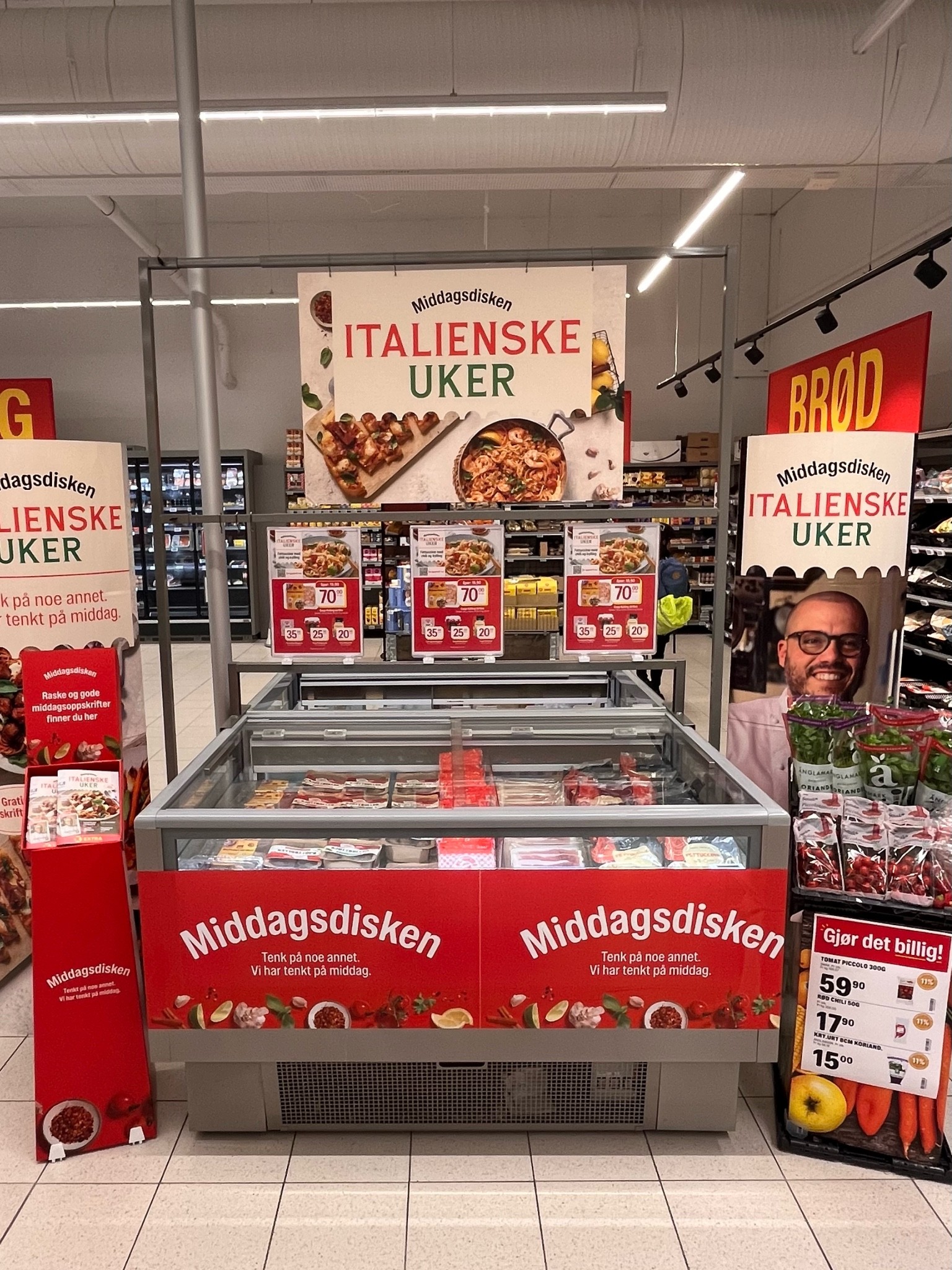 Middagsdisken samler oppskrifter, råvarer og gode tilbud på ett sted i butikken. Kundene kan plukke med seg både et gratis oppskriftshefte og ingrediensene de trenger for å lage enkle og smakfulle middagsretter – til en pris som gir kunden mer for pengene.