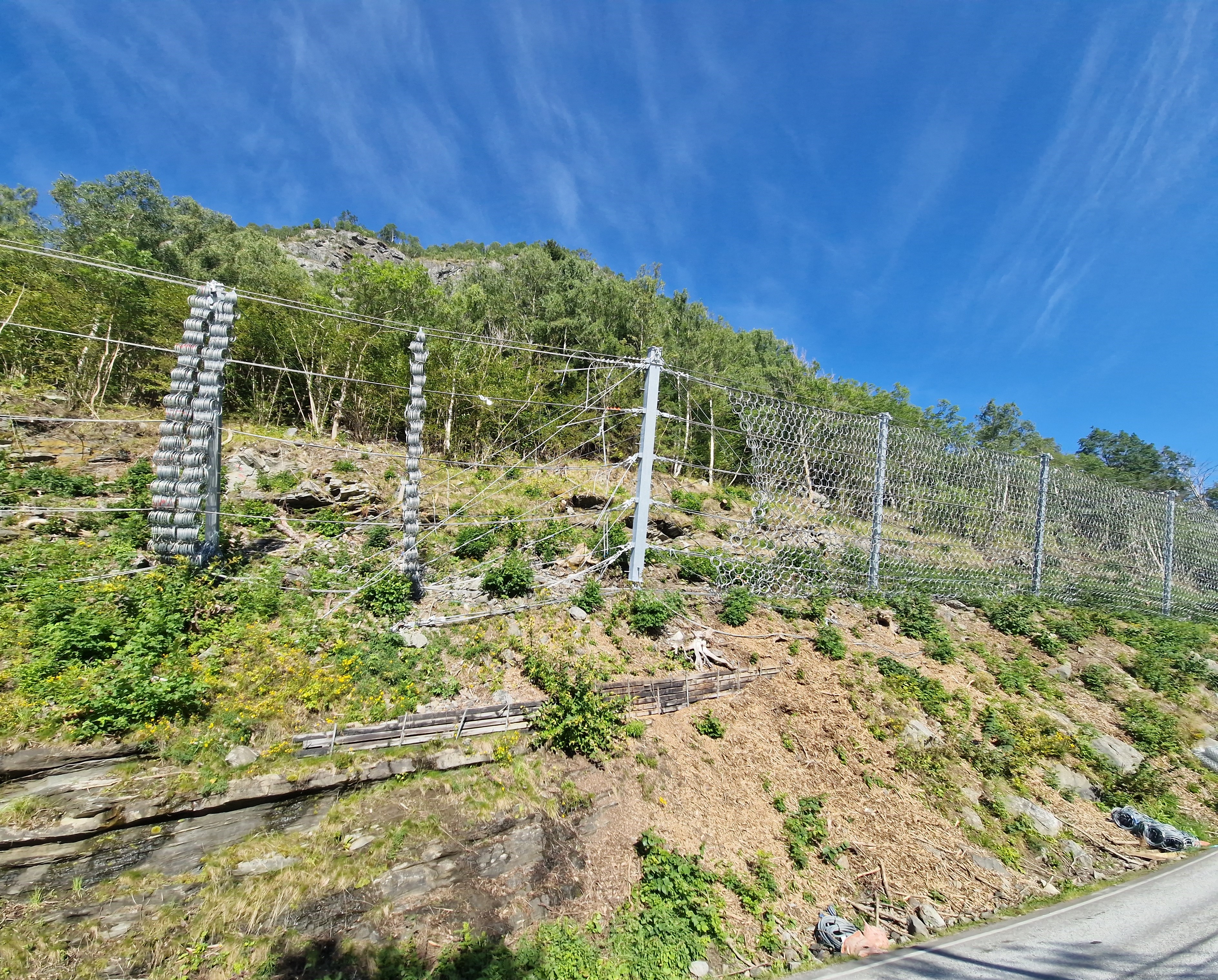 Terrenget er krevjande og er prega av mykje laus stein. Dette gjer at enkelte arbeidsoperasjonar vert meir utfordrande, då det kan rulla stein ned mot vegbana.