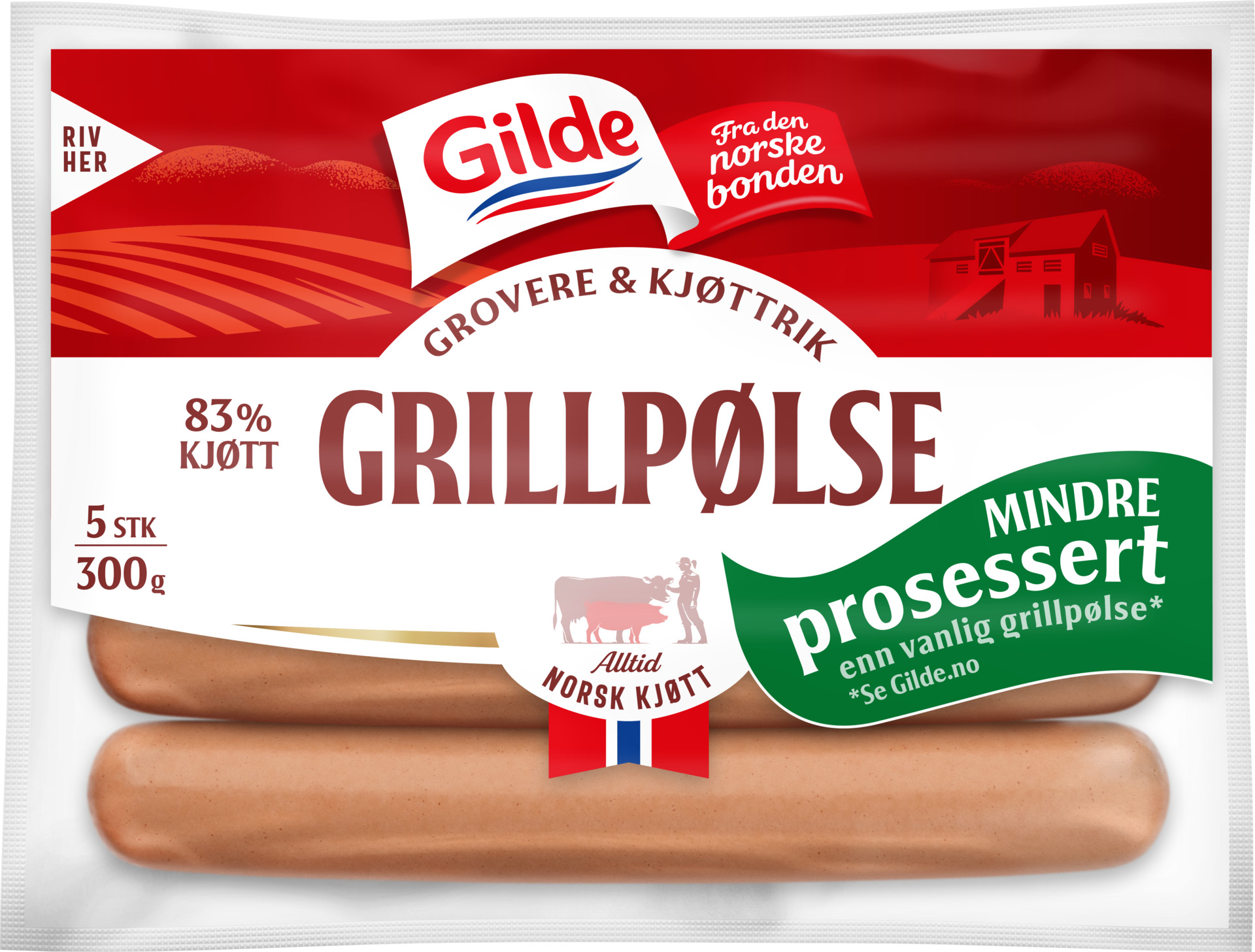 Som del av en større satsning, lanserer Gilde nå mindre prosesserte grillpølser, skinnfrie kjøttpølser og kokt skinke – fortsatt med den kjente, gode smaken.