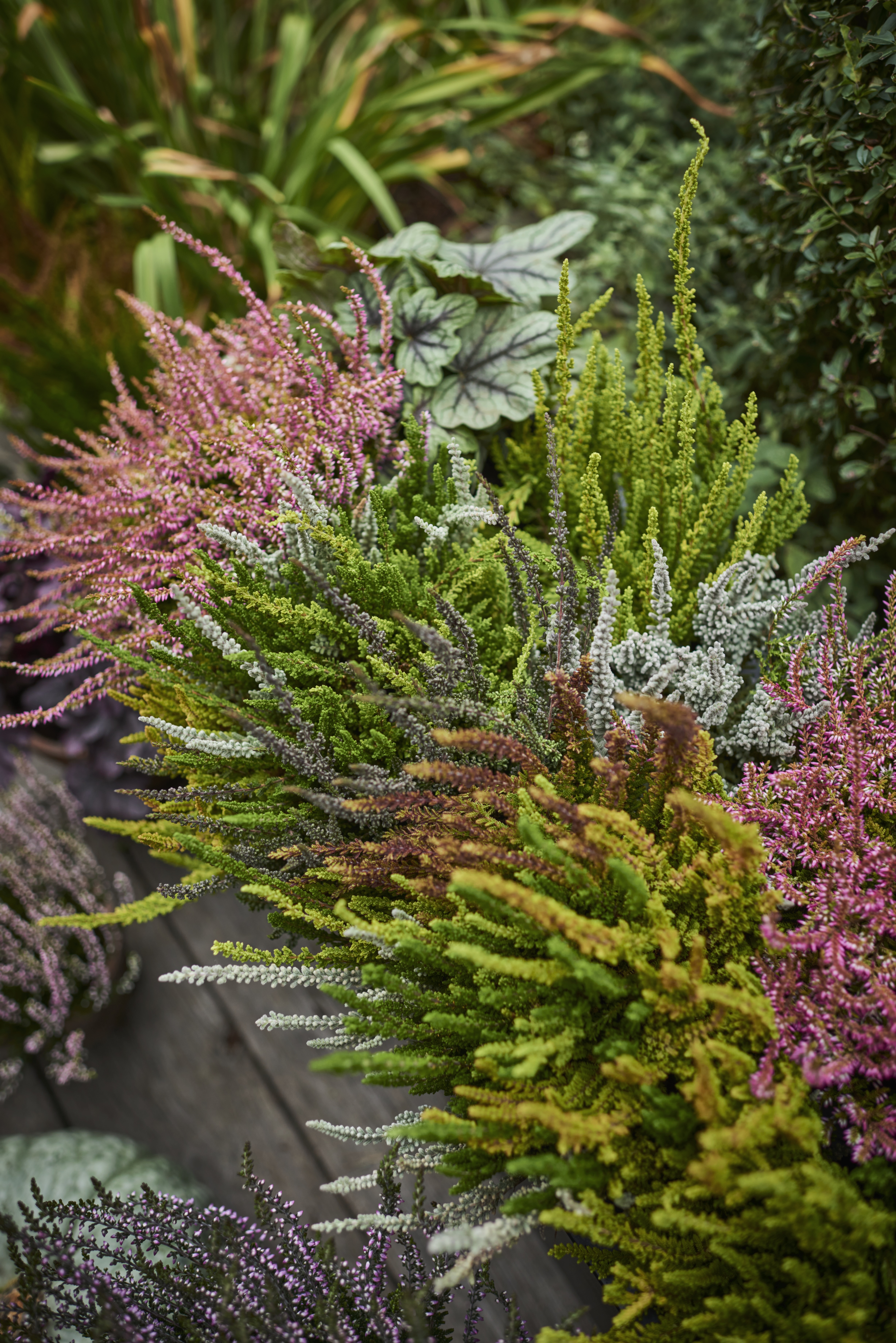 - Calluna vulgaris 'Symphony' er riktblomstrende og gir en vakker dybde i krukker og kasser, samtidig som den holder seg dekorativ langt utover vinteren.