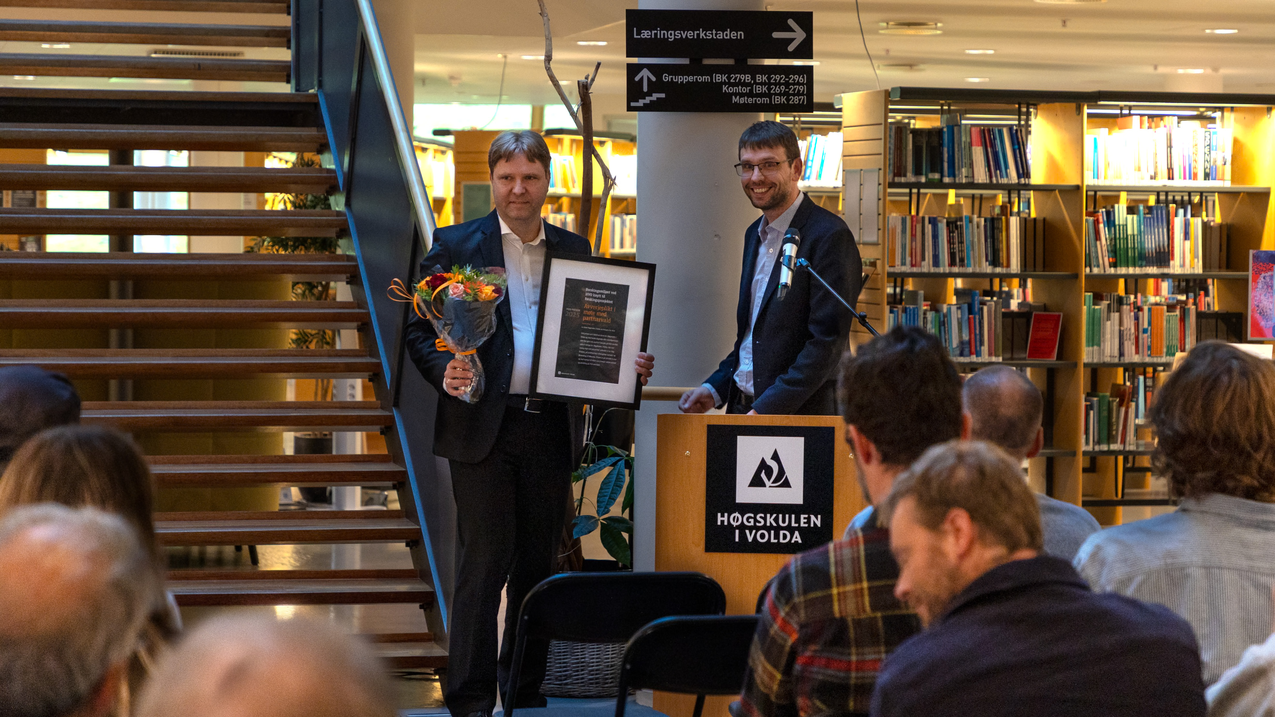 – Prosjektet vil bidra breitt i samfunnet gjennom publisering og formidling. Sidan forskingsresultata deira kan direkte omsetjast i førebygging, er det godt å sjå kor mykje av innsatsen forskarane har retta mot det å nå ut til dei som avverjeplikta vedkjem i det daglege. MANREPORT-IPV er eit førebilete som viser kva ein kan få til når fleire forskarar dreg i same retning, sa prorektor Eirik Søvik, som delte ut prisen på vegner av høgskulestyret.
