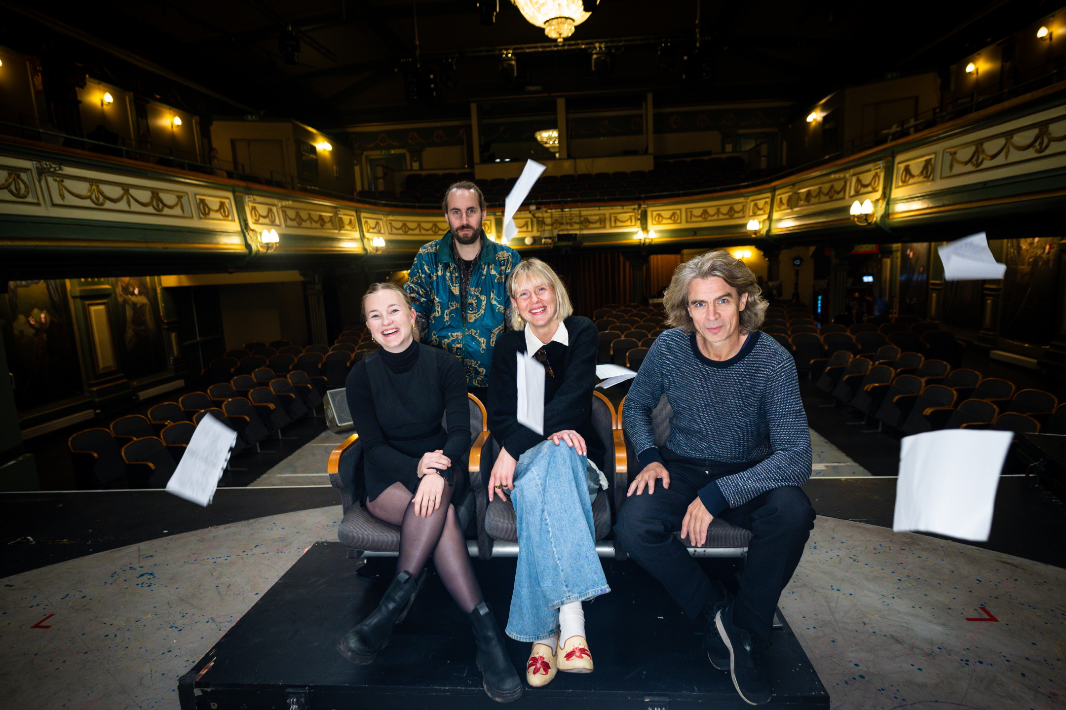 Kunstnerisk leder Sjur Marqvardsen (Oslo Fringe), produsent Ida Nordskaug (Oslo Nye Teater), festivalsjef Amanda Tunsberg (Oslo Fringe), teatersjef Runar Hodne (Oslo Nye Teater). Foto: Lars Opstad Oslo Nye Teater