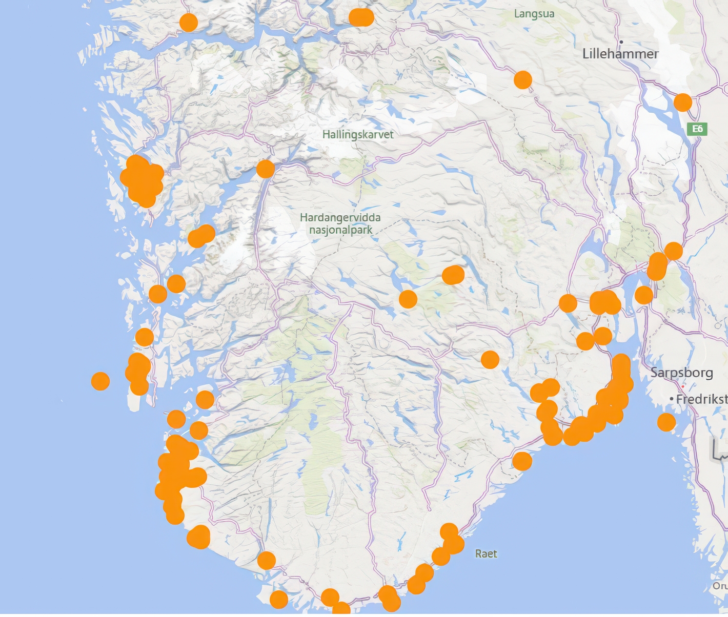 Flest skader er hittil registrert i Bergensområdet, Stavanger og Jæren, samt i Arendal og langs strekningen Porsgrunn–Horten. Mens Vestlandet ble rammet først, er ekstremværet nå på vei mot Østlandet, og Tryg forventer en betydelig økning i antall meldte skader.