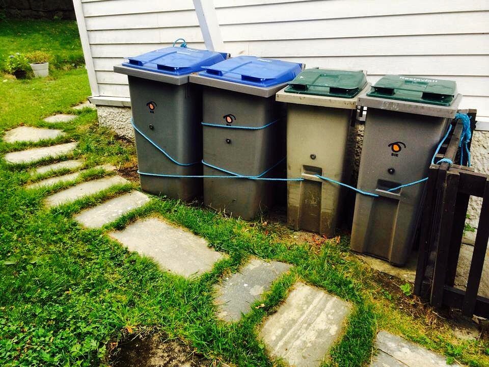 - Bind fast ting som må stå ute, men som kan bli tatt av vinden, som for eksempel søppelspann.