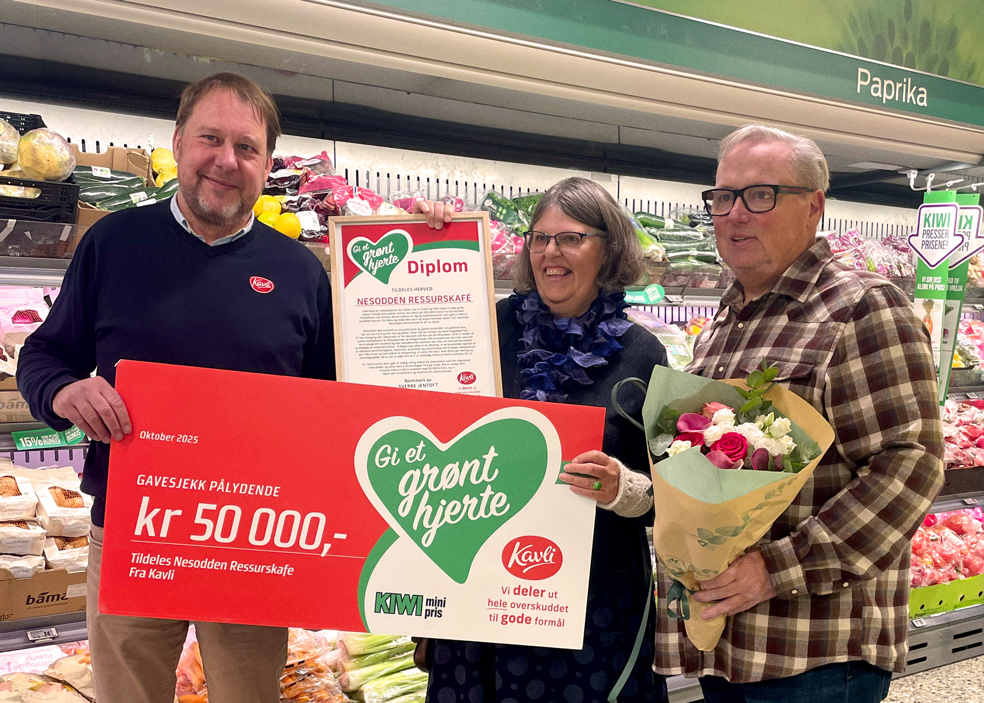 Kavli eies av den allmennyttige stiftelsen Kavlifondet, som hvert år deler ut hele overskuddet fra Kavlikonsernet til gode formål. I samarbeid med KIWI har KIWI-kunder over hele landet fått muligheten til å nominere sine lokale hjertesaker og være med på å bestemme hvem som skal motta støtte. Seks gode formål fra ulike deler av landet er valgt ut til å motta 50.000 kroner hver i støtte fra Kavli. Juryen har bestått av representanter fra Kavli, KIWI og Kavlifondet.