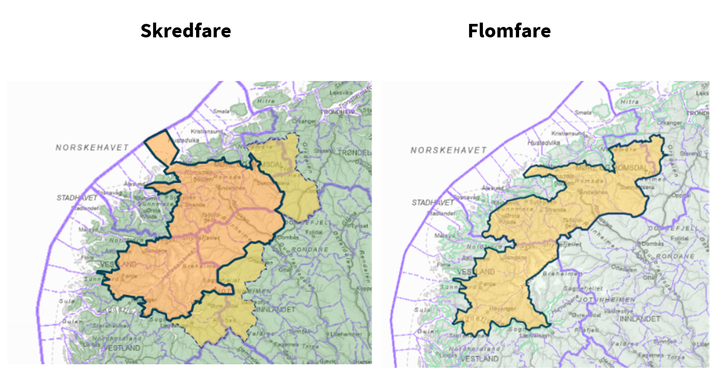 NVE har også sendt ut varsel for flom på gult nivå for indre strøk av Vestland fylke og på Nordvestlandet