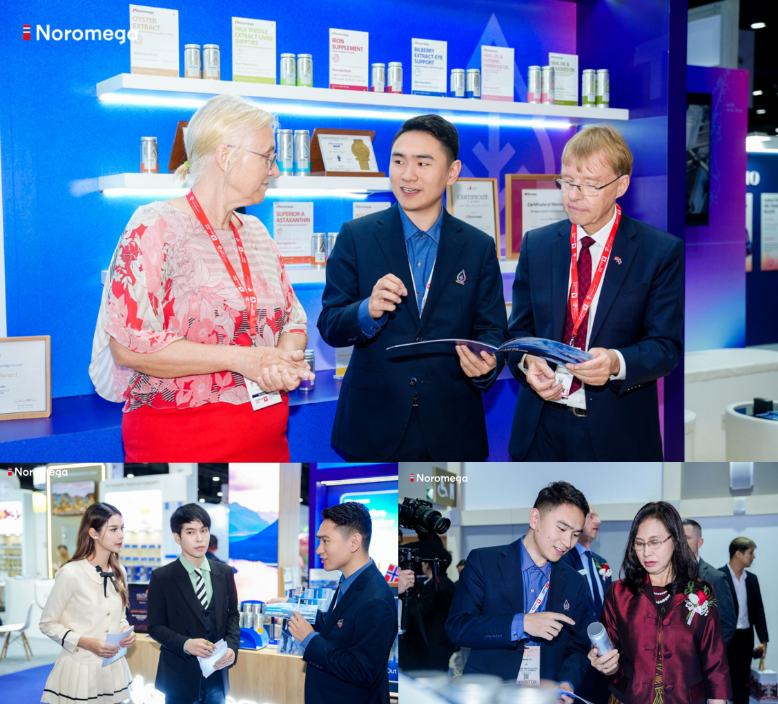 As a key TNCC-recommended exhibitor, Noromega stood out at Vitafoods Asia 2025 in Thailand, showscaing its full product range. Astrid Emilie Helle, Norwegian Ambassador to Thailand, and TNCC President Mr. Axel Blom attended the booth alongside CEO Derek to co-host the Release Ceremony of Noromega Global Market Strategy, underscoring strong recognition from the Norwegian authorities for the brand’s global strategic footprint.