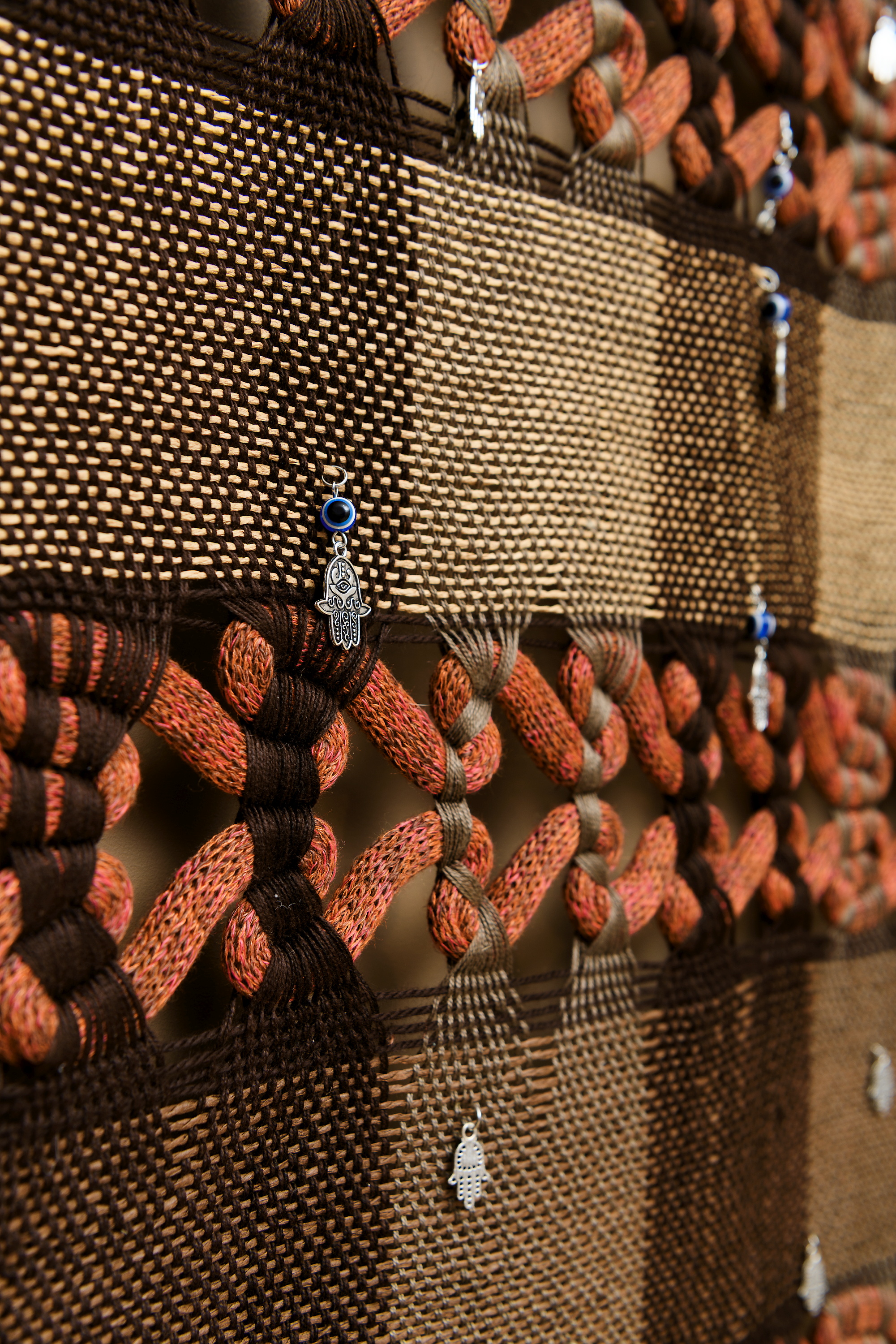Damien Ajavons veggteppe «Chemin vers Oslo» tar utgangspunkt i det beskyttende symbolet hamsa, Fatimas hånd. Verket er ment som en beskyttelse av utstillingen, kunstnerne og publikum.