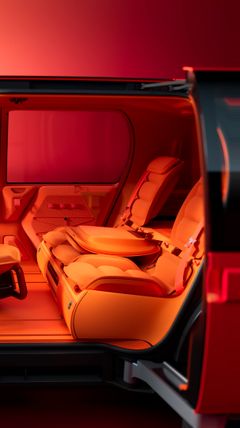 Fire sidedører uten midtstolpe og flatt gulv gir enkel adkomst og stor bevegelsesfrihet. Tre av baksetene kan løftes ut og brukes som stoler utendørs – en moderne hilsen til 2CV-tradisjonen.