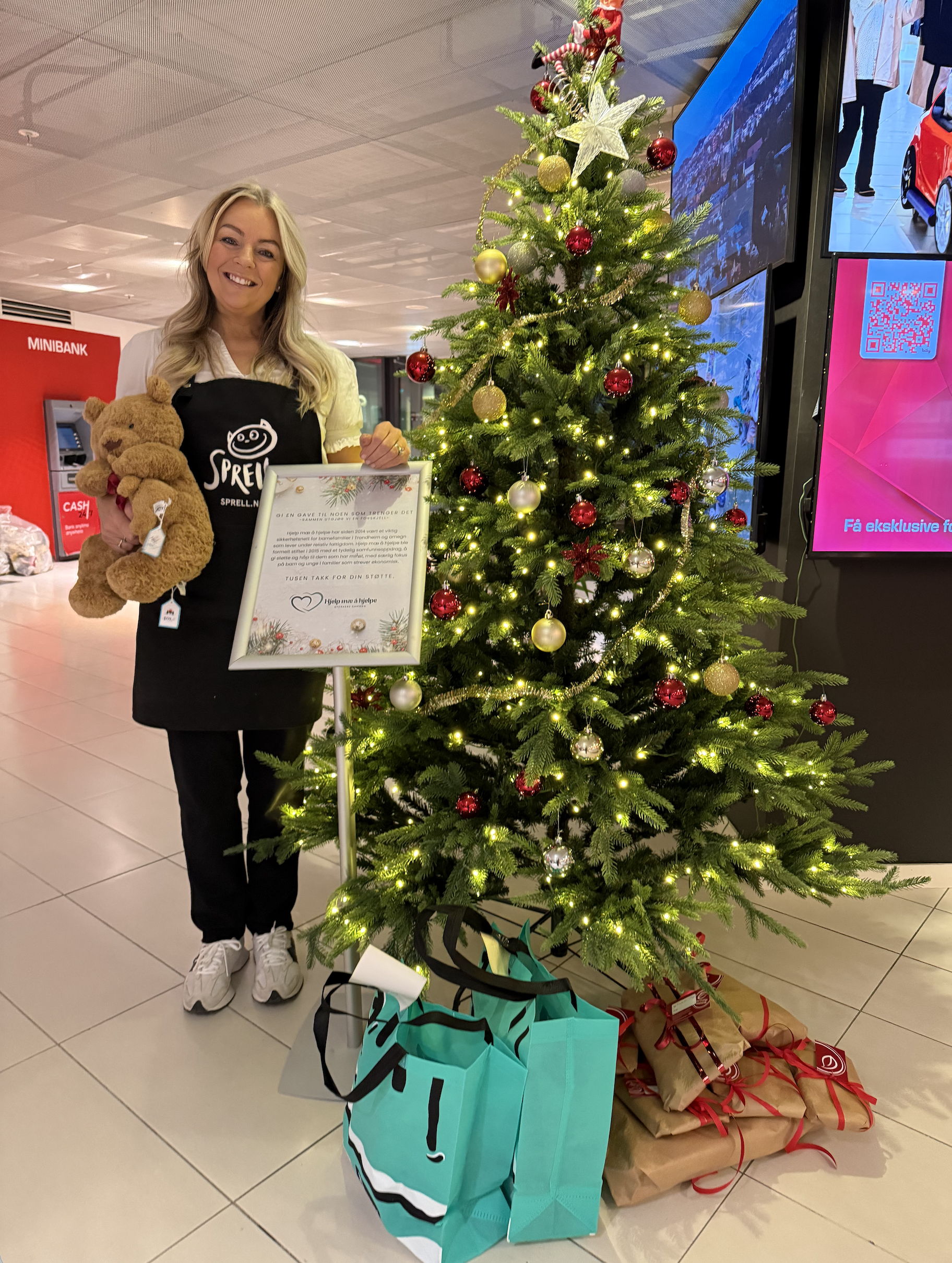 På Sirkus Shopping er det satt opp et juletre der besøkende kan legge gaver til familier som trenger det. Samtidig kommer en stor del av gavene fra butikkene på senteret – et tydelig tegn på lokalt engasjement og vilje til å bidra.