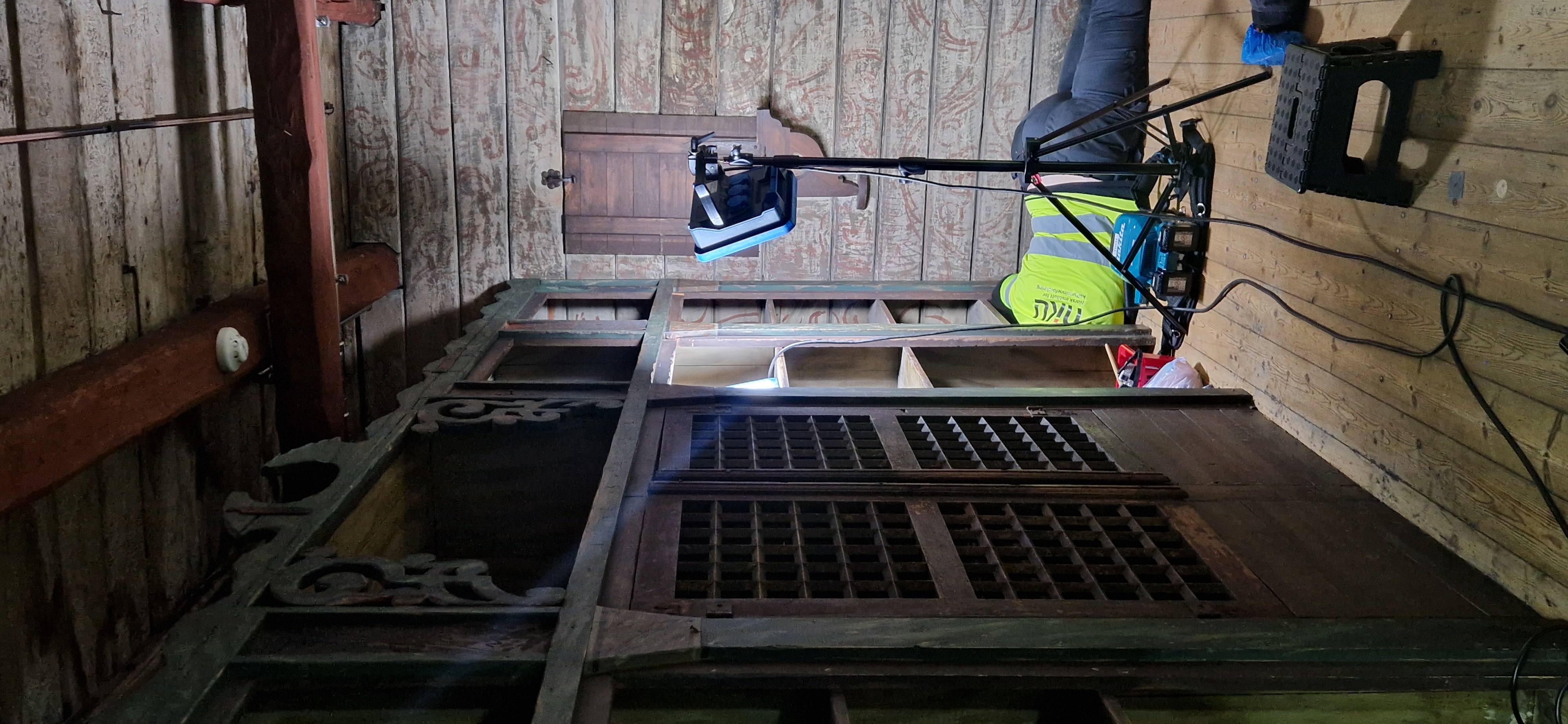 Etter arkeologiske undersøkelser og etablering av nytt grunnvannsbasseng ble bygget fundamentert på nytt av tradisjonshåndverkere fra Gamle3Hus. Prosjektet har også inkludert omfattende oppgraderinger innen elektro, brannsikring, sprinkler, sanitær og klimaregulering – alt tilpasset fredet trearkitektur.