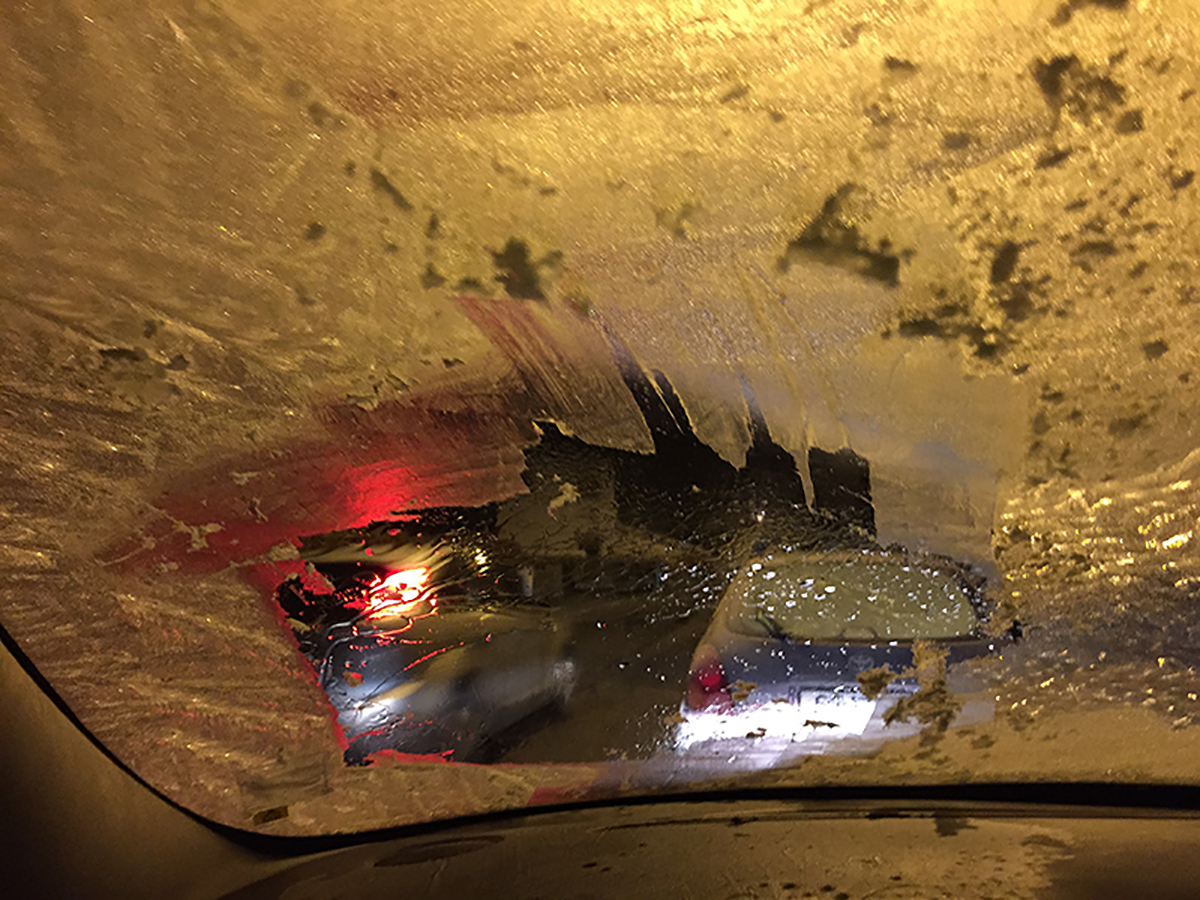 - Hvis du har skrapt mindre enn halve frontruta, blir det anmeldelse. Og hvis det er skrapt mindre enn et A4-ark, blir det anmeldelse og førerkortbeslag.