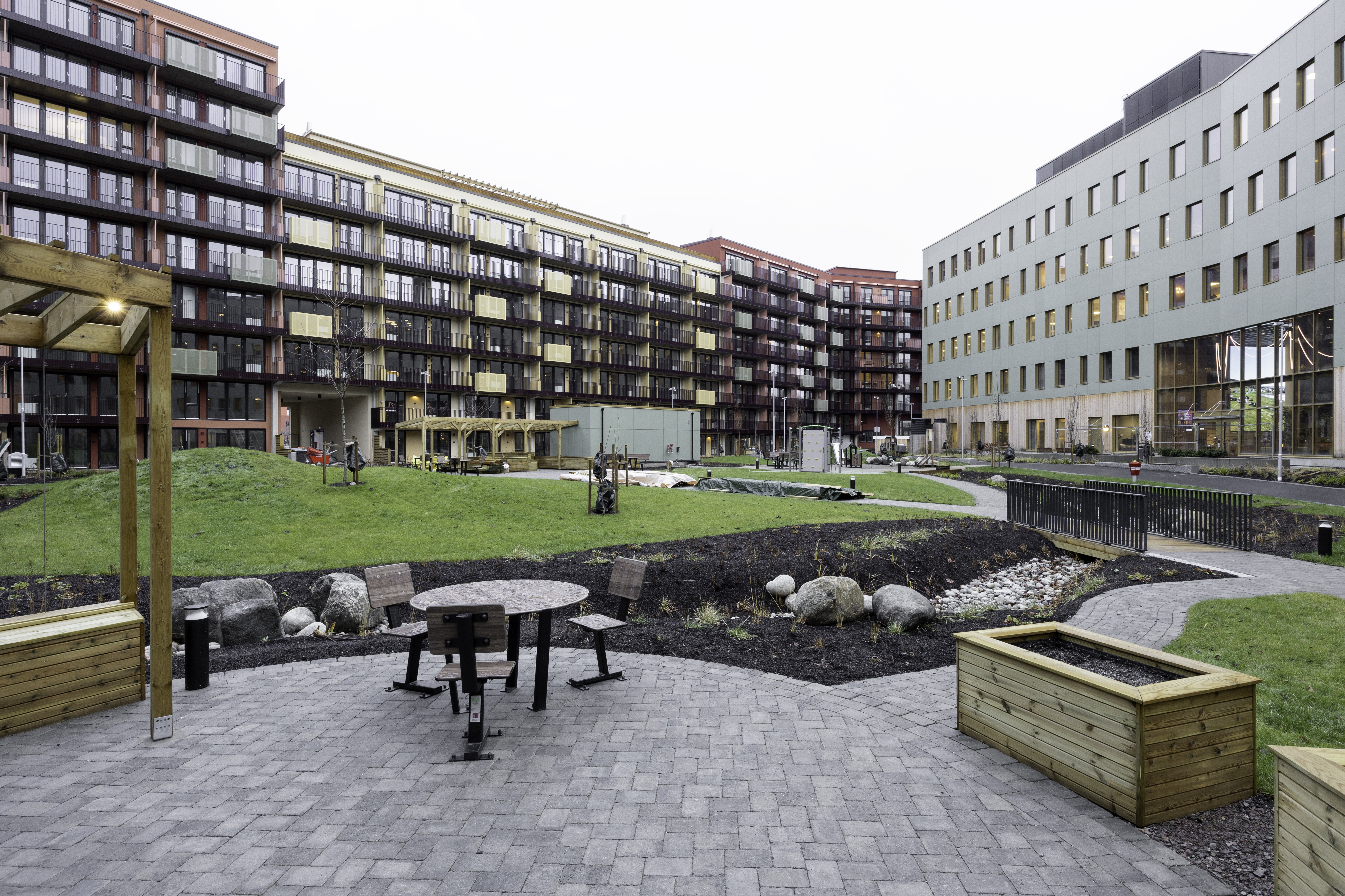 Beboerne får også tilgang til en gjesteleilighet som kan brukes når de får besøk av familie og venner, og det er mulig å låne fellesrom til private sammenkomster.