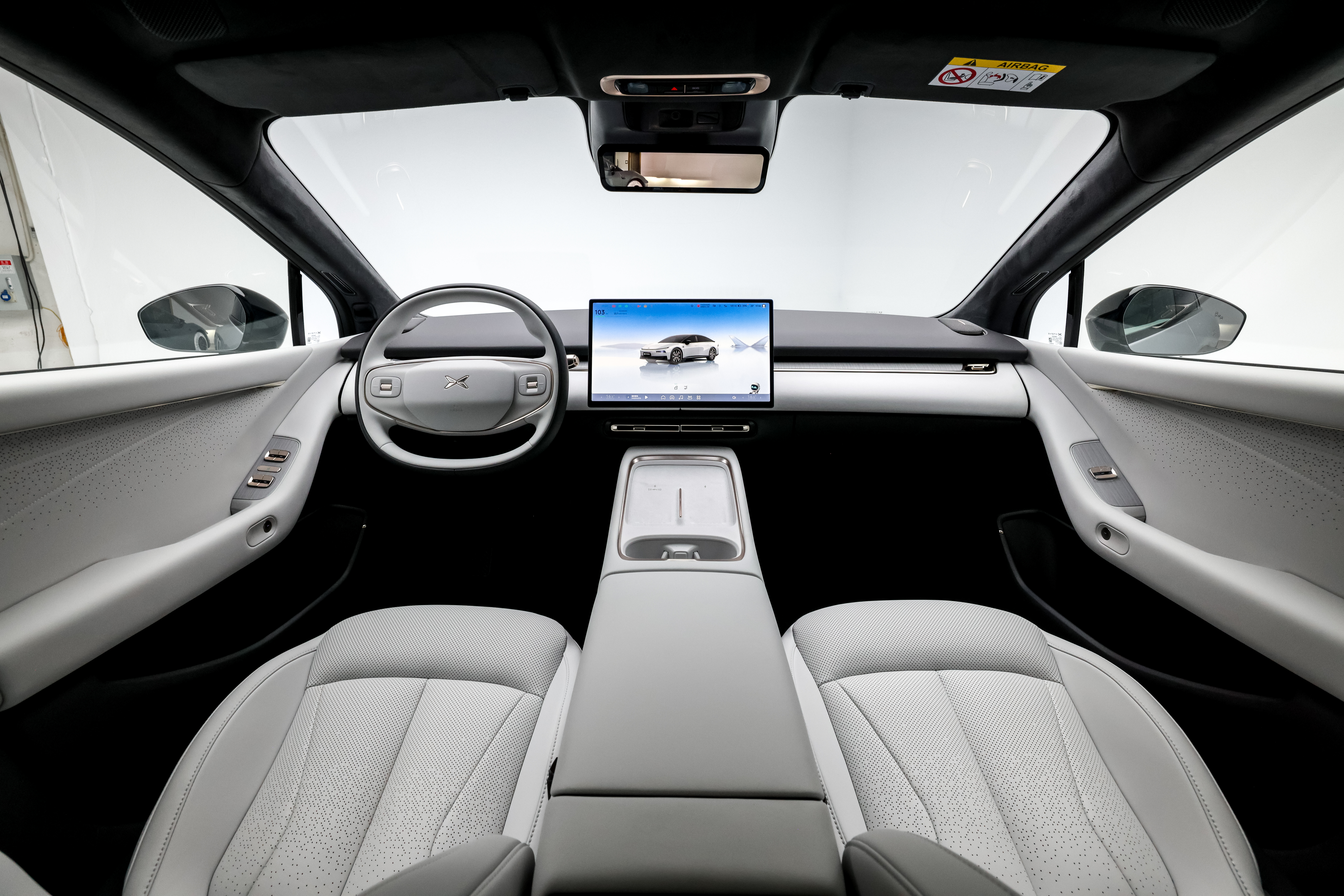 For første gang i Europa leveres en XPENG-modell med et stort head-up display. Det viser sentral kjøreinformasjon og kan også vise video fra bilens blindsoner når føreren blinker.