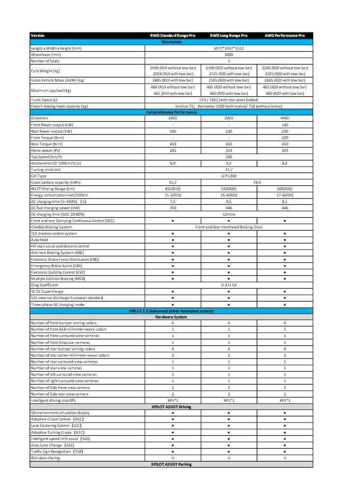 XPENGs batteristrategi tar utgangspunkt i faktisk kjøremønster. De fleste daglige kjøreturer er relativt korte, og kombinasjonen av effektive batterier og svært rask DC-lading gir høy brukbar rekkevidde både i hverdagen og på langtur. LFP-batteriet gir høy termisk stabilitet og lang levetid, og gjør det mulig å lade til 100 % oftere uten vesentlig slitasje.