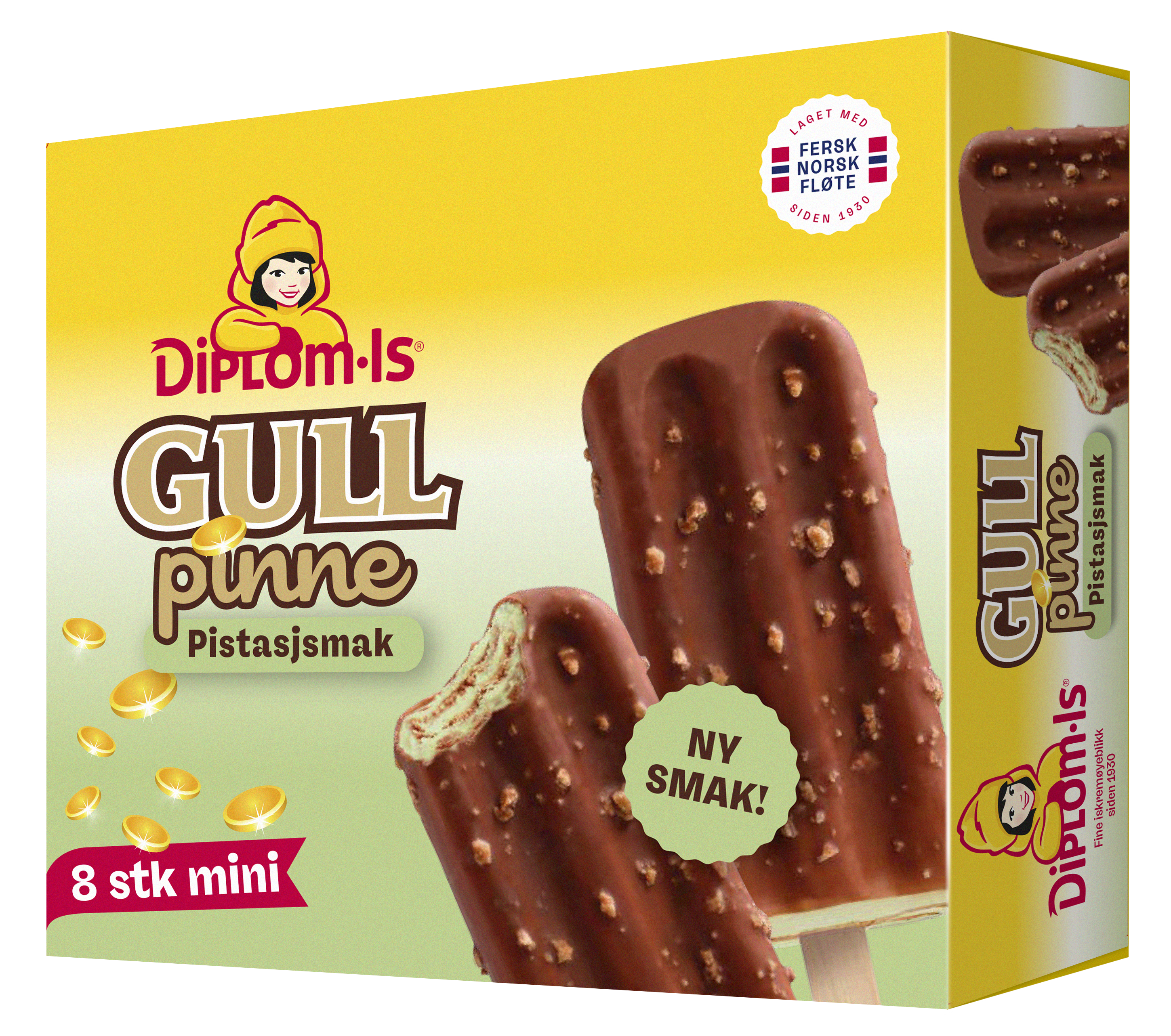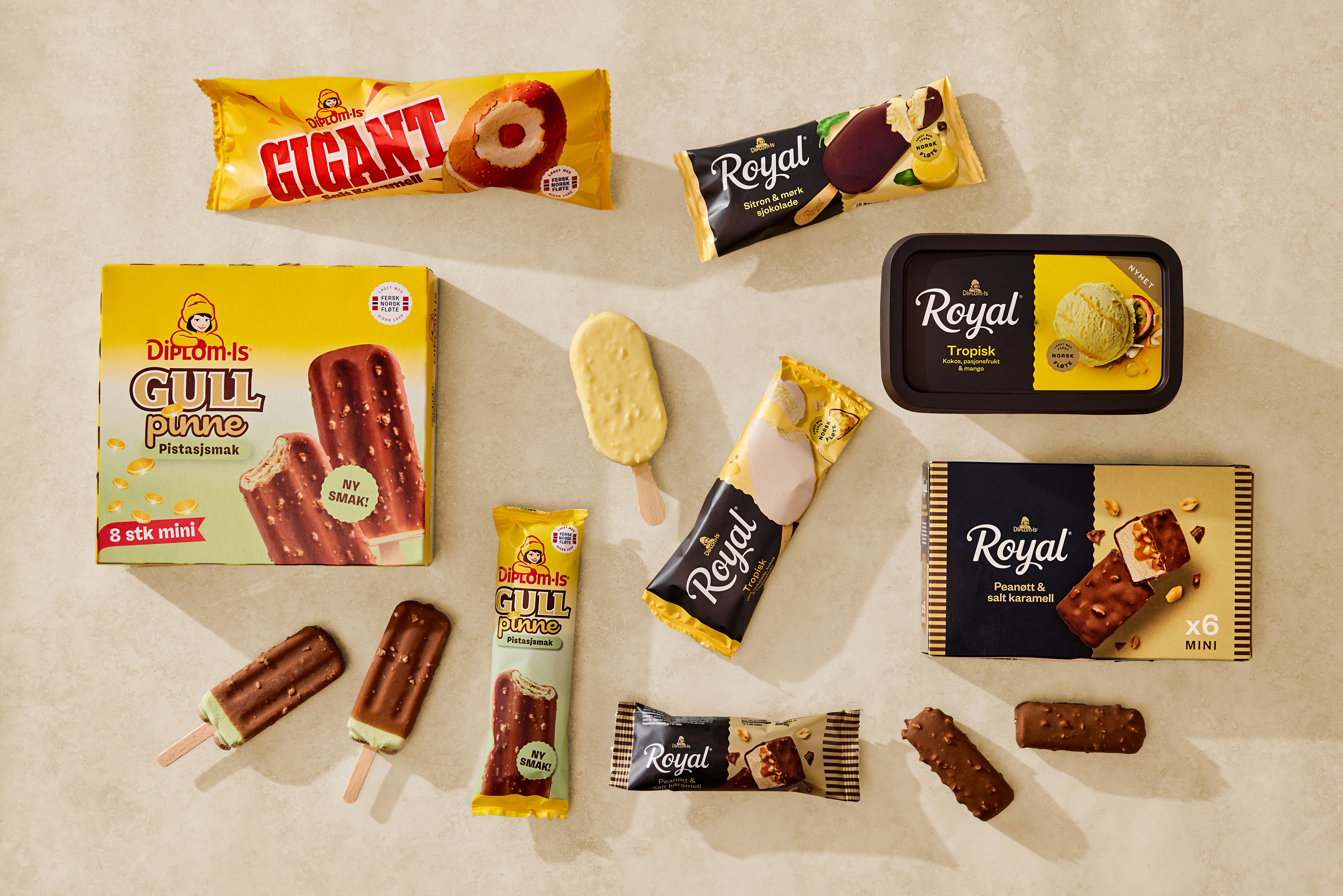 For første gang siden 1968 kommer Gullpinne med ny smak. Samtidig byr Diplom-Is på en ny variant av Gigant, utvider Royal-serien med fruktige nyheter og introduserer et nytt tilskudd i «iskrembar»-form.