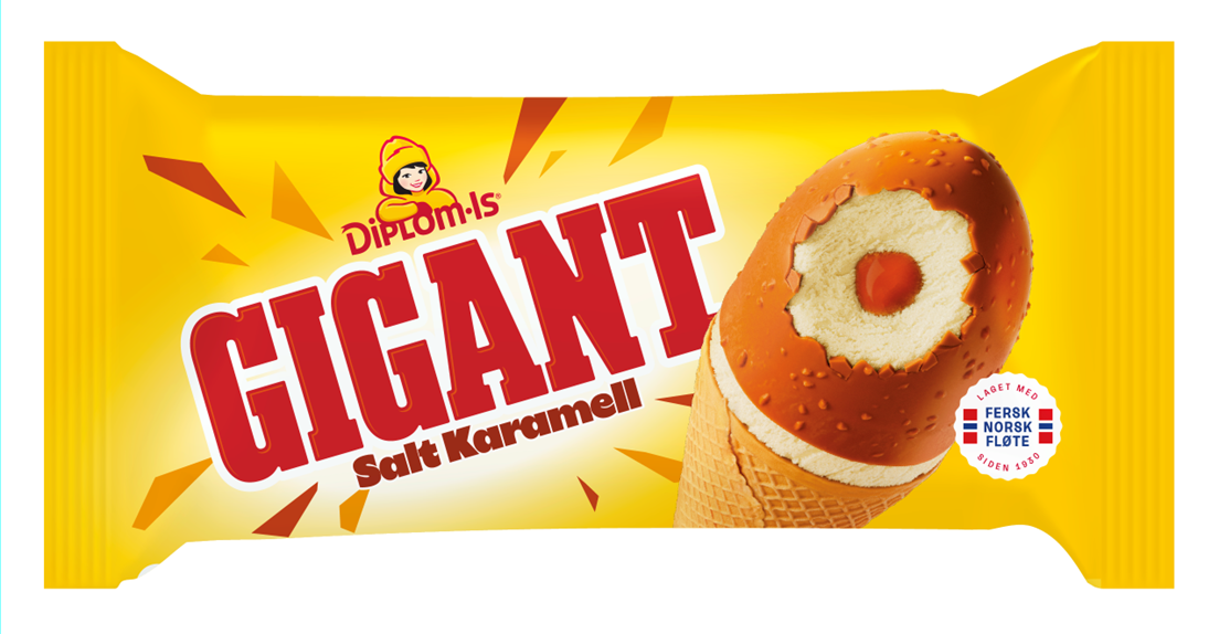 Gigant har vært Norges største is siden 1980, og den ikoniske kjeksisen har beholdt populariteten gjennom fire tiår. Nå får også Gigant et smaksløft i form av en fyldig kombinasjon av fløteis, salt karamellsaus og karamelltrekk med crisp. Denne spennende nyheten vil erstatte dagens Gigant.