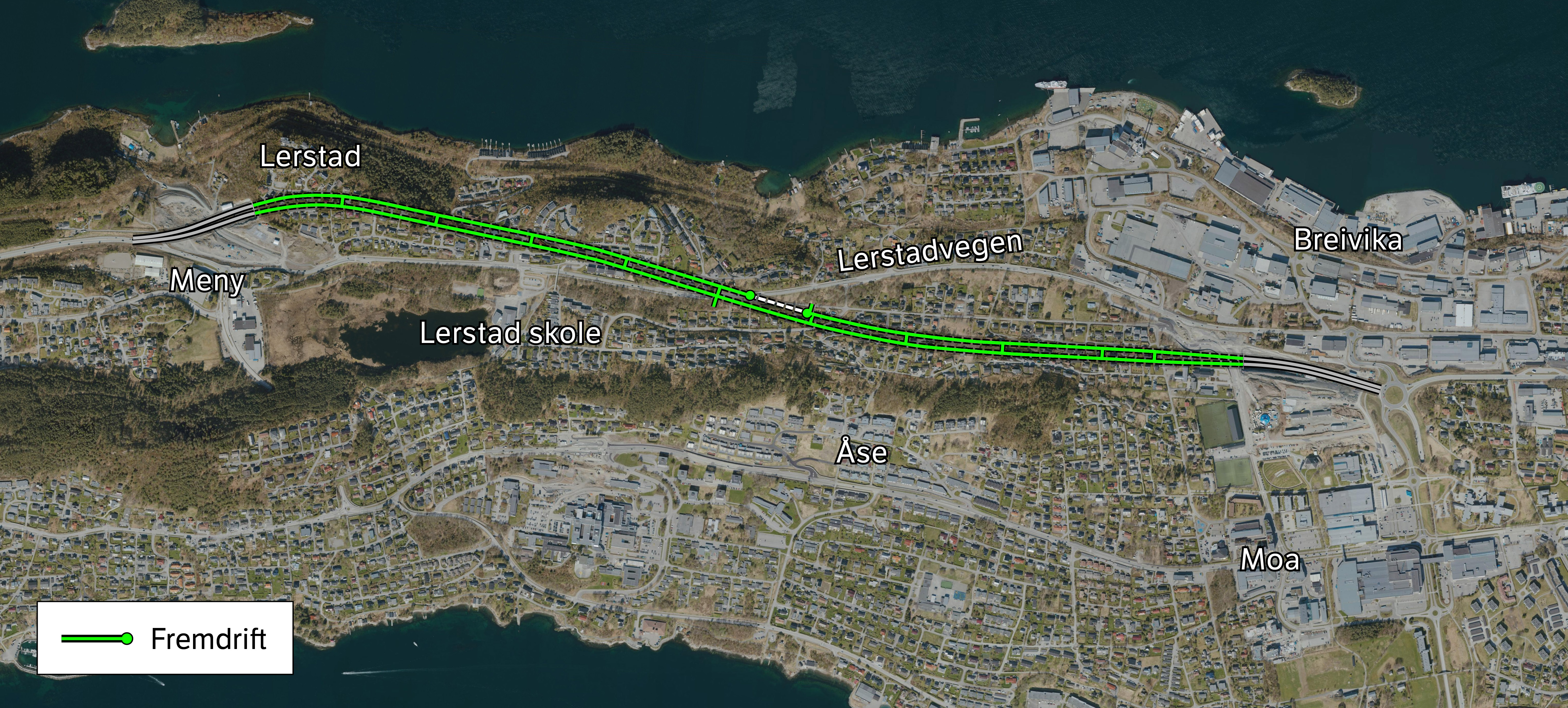 Tunnelen får en lengde på ca 2,6 kilometer, og den vil avlaste både dagens Lerstadveg og E136 gjennom bydelene Moa og Åse. Tunnelen skal åpne for trafikk høsten 2027.