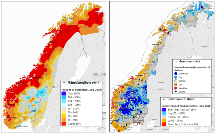 Hvis det tørre været fortsetter, vil grunnvannstanden synke ytterligere. Det kan gi lavere vannivå enn normalt utover vinteren i innsjøer, elver og bekker.