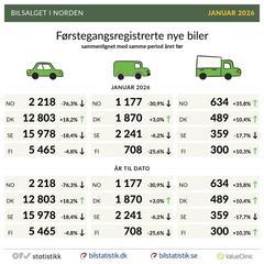 Lunkent nybilsalg etter desember-rush, men økt tempo i bruktbilmarkedet2.2.2026 09:50:00 CET | Pressemelding