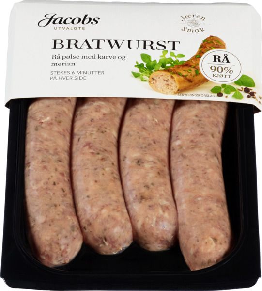 Produkt: Jacobs Utvalgte Bratwurst Rå 270 g
