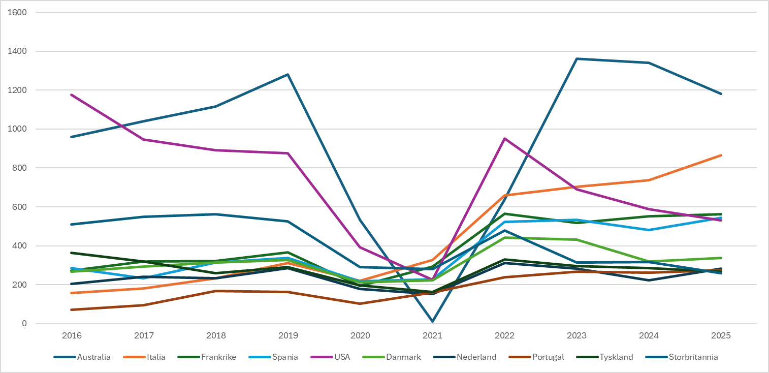 – I 2025 valgte 532 norsk studenter USA. Det er mer enn en halvering på ti år, og fører USA ned på en femteplass totalt.