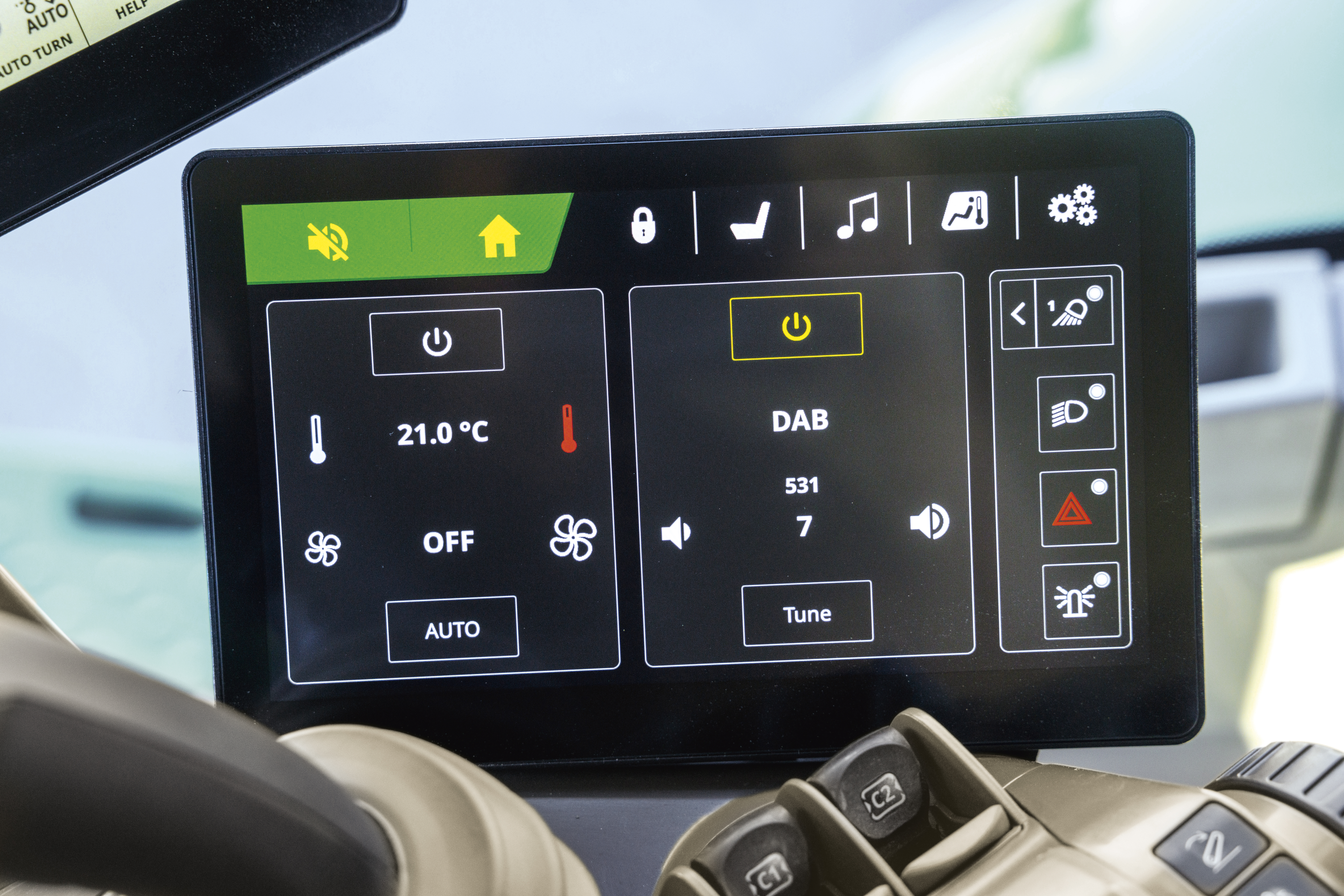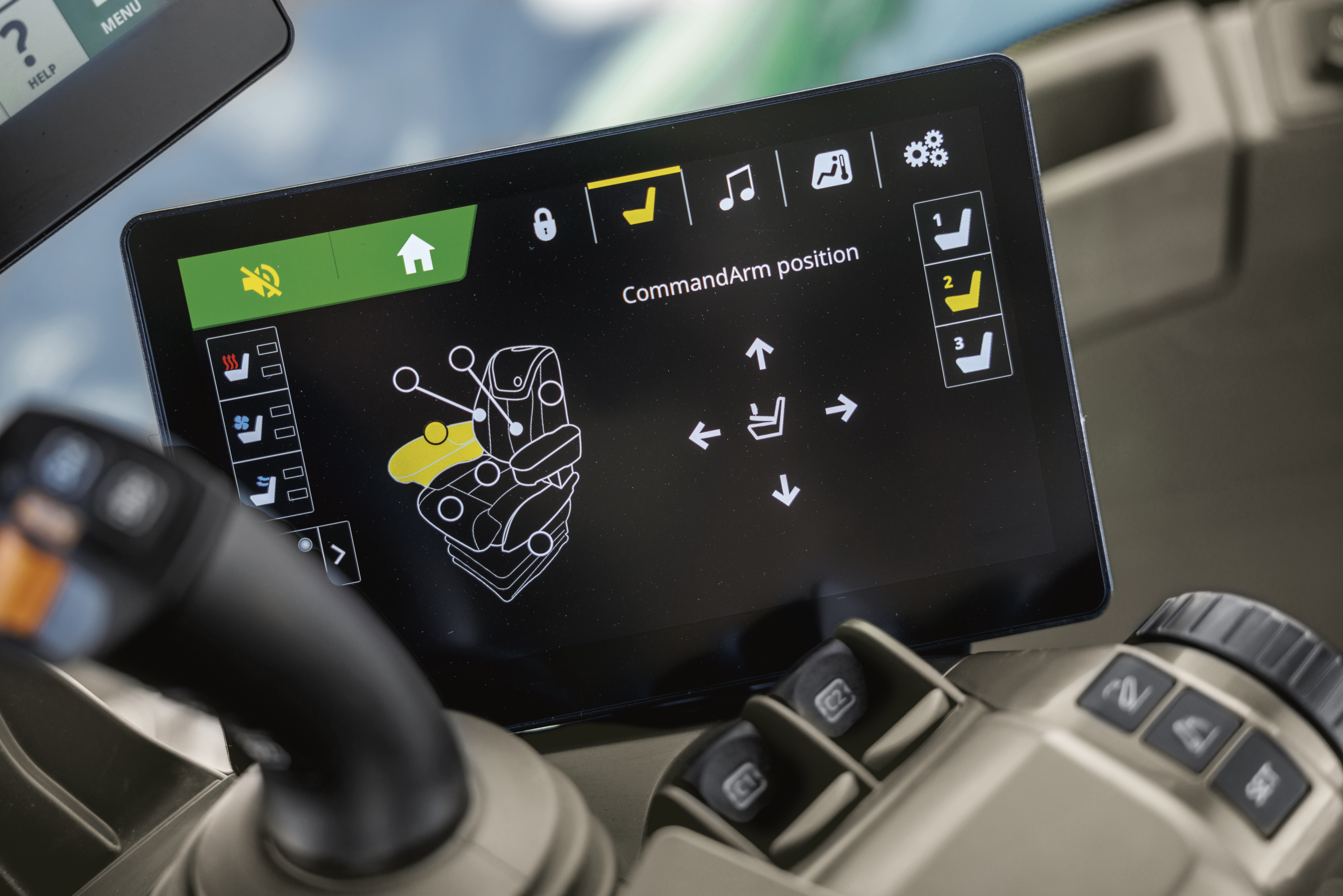 CommandView™ 4-hytta har en oppdatert CommandARM™ med et integrert kjørekomfort-display. Føreren kan nå lagre seteinnstillinger og tilpasse funksjoner som radio, klimaanlegg og telefon.