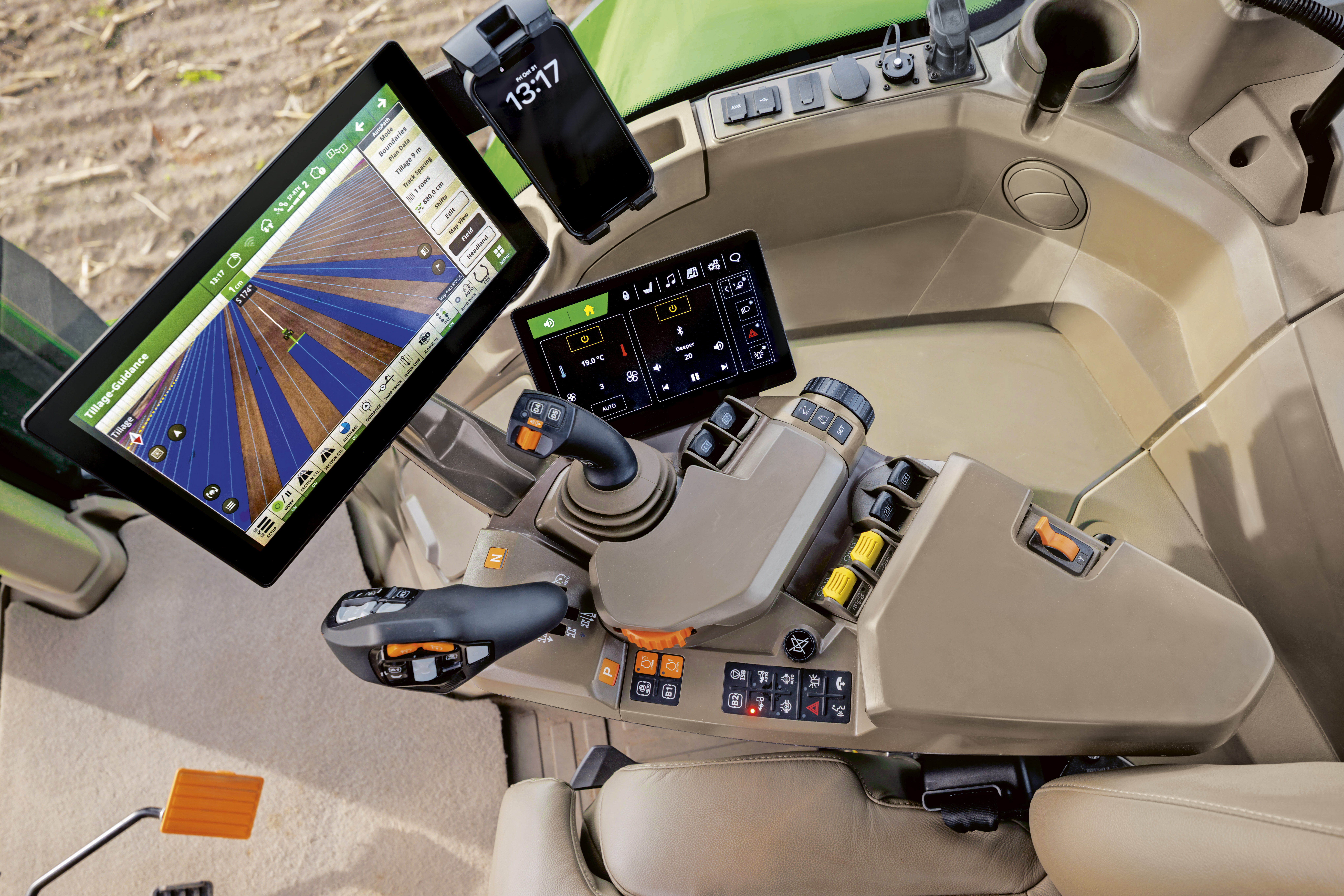 Alle nye modeller leveres med StarFire™ 7500-mottaker, G5Plus CommandCenter™-display og JDLink™-tilkobling som standard. Løsningene gir tilgang til avanserte presisjonsfunksjoner som AutoPath™, AutoTrac™ Turn Automation og deling av feltdata via John Deere Operations Center™.