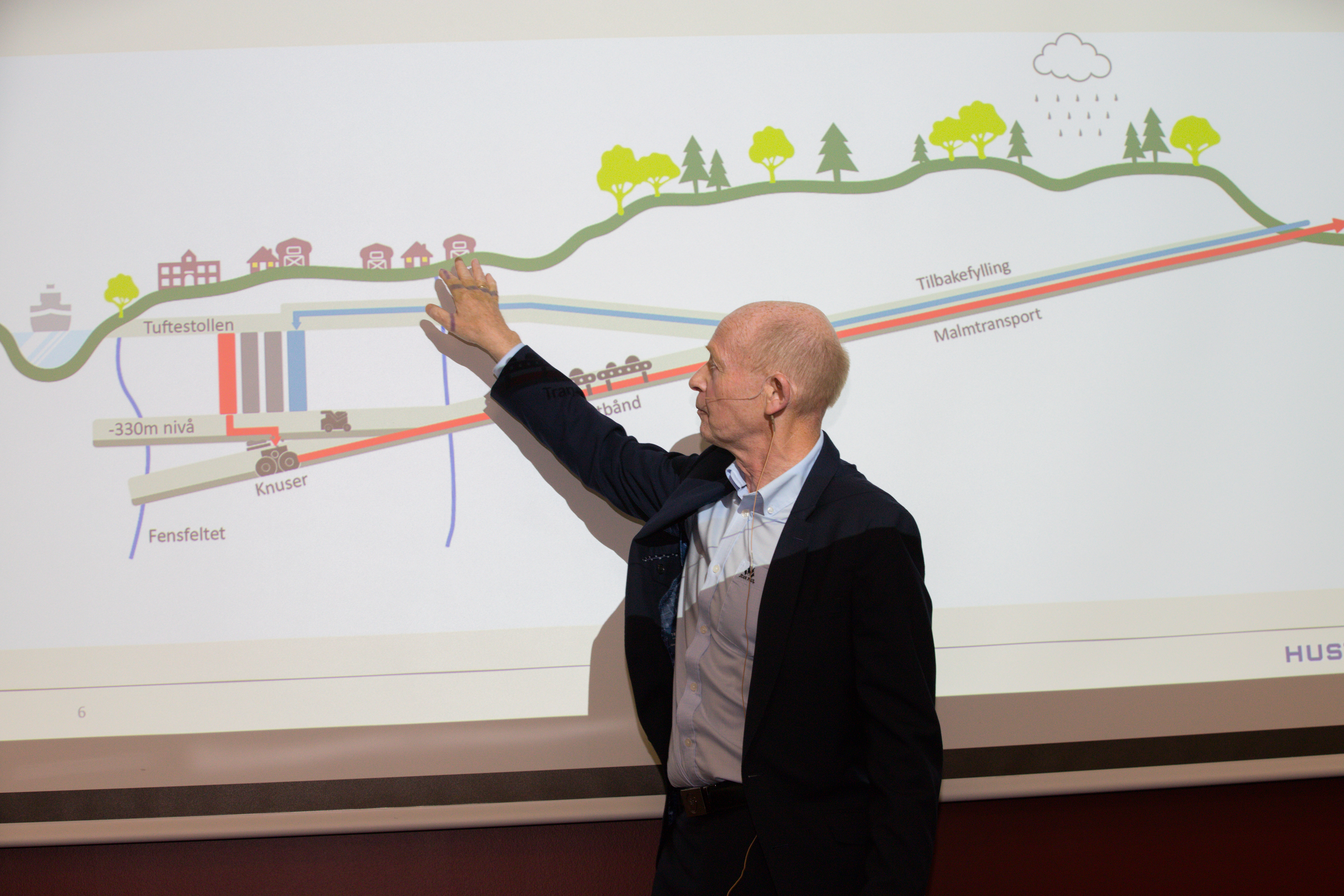 Alf Reistad, daglig leder i Rare Earths Norway AS (REN), viser frem selskapets modell for ansvarlig underjordisk gruvedrift i Fensfeltet.