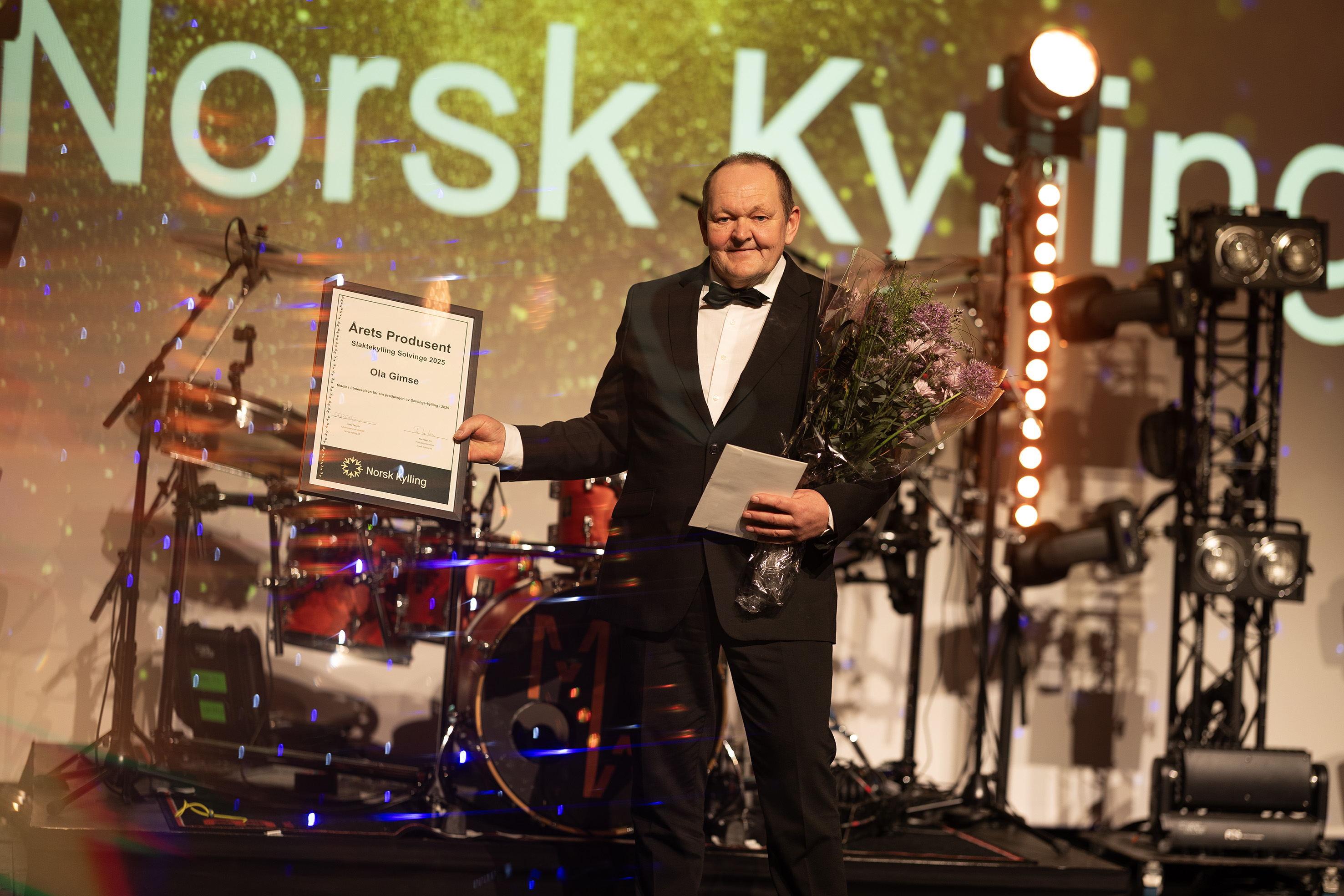 Prisen for årets produsent Solvinge gikk til Ola Gimse på Melhus. Gimse startet med kyllingproduksjon i 2007 og driver i dag ett Solvingefjøs på 823 kvadratmeter. – Ola har over mange år levert gode resultater, og utmerker seg med høy presisjon i drifta og god kontroll i alle ledd. Produksjonen kjennetegnes av stabile leveranser, god tilvekst og god helse i flokkene, forteller Lien.