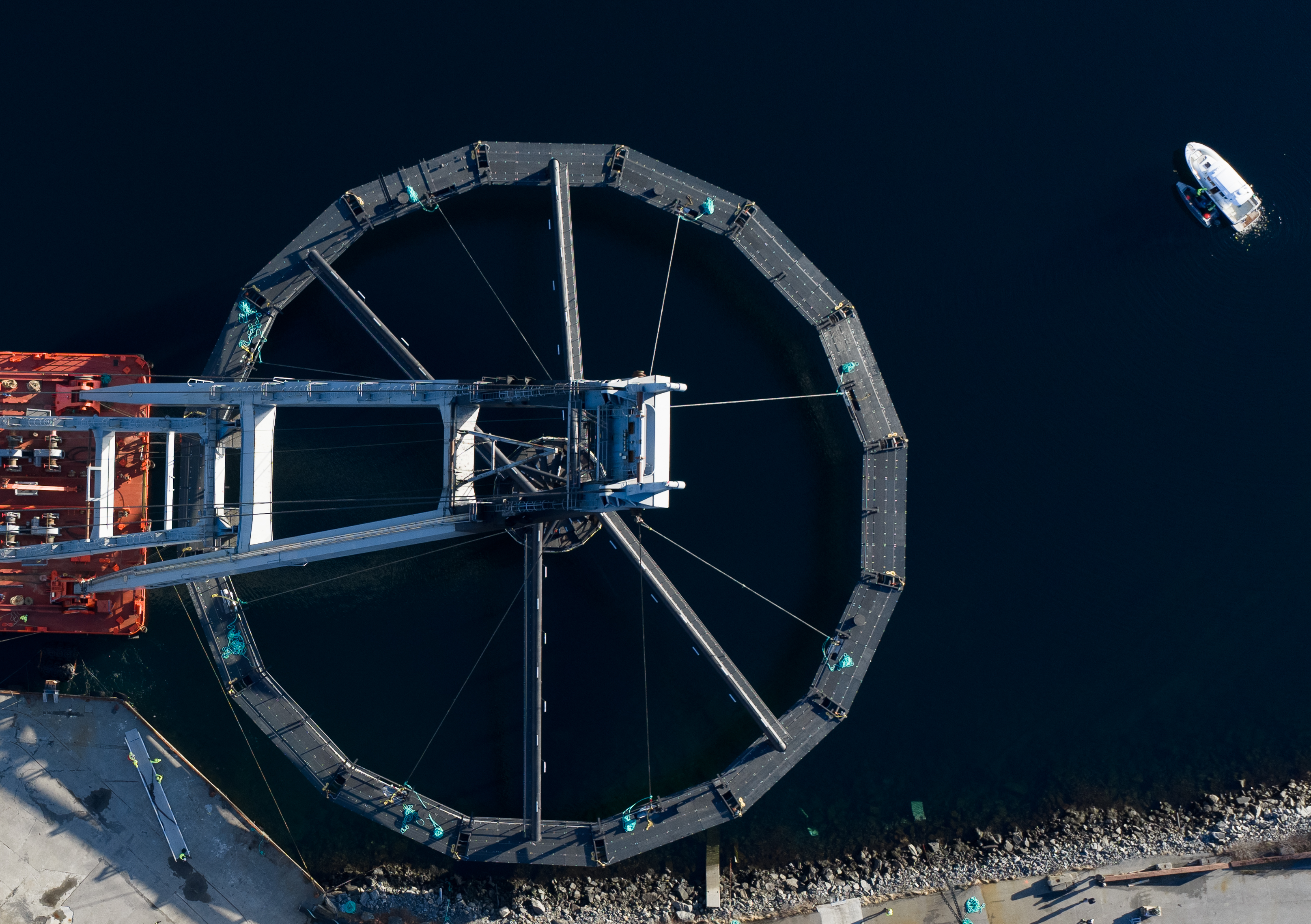 BAUTA Maritime, avdeling Hjørungavåg har bygget Havliljen, og søndag ble den enorme konstruksjonen sjøsatt. Den skal etter hvert fraktes til Hofseth sin oppdrettslokasjon på Vindsnes i Storfjorden, hvor den skal tas i bruk til produksjon av laks. Toppen av Havliljen skal trekkes ned til ca 15 meters dyp ved hjelp av en hydraulisk vinsj koblet til en 270 tonn tung bunnvekt.