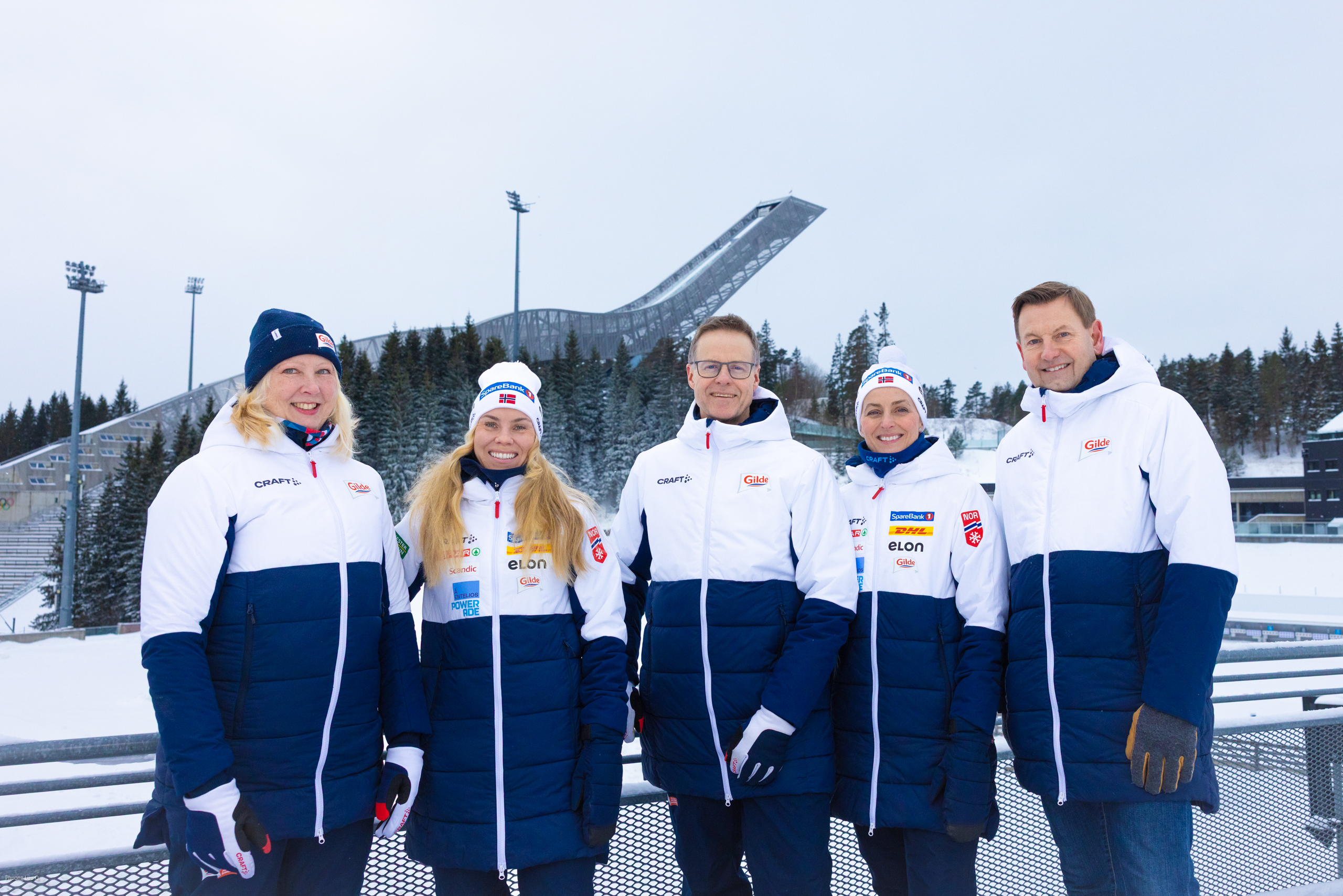 Fra venstre: Mette Kolbjørnsen (Sponsor- og kampanjeansvarlig Gilde), Andrea Bell Pedersen (markeds- og partneransvarlig Langrenn), Atle E. Larsen (Leder sponsorater og Trade Marketing Gilde), Cathrine Instebø (Langrennssjef) og Lars Gunnar Johnsen (konserndirektør i Gilde). Fri redaksjonell bruk